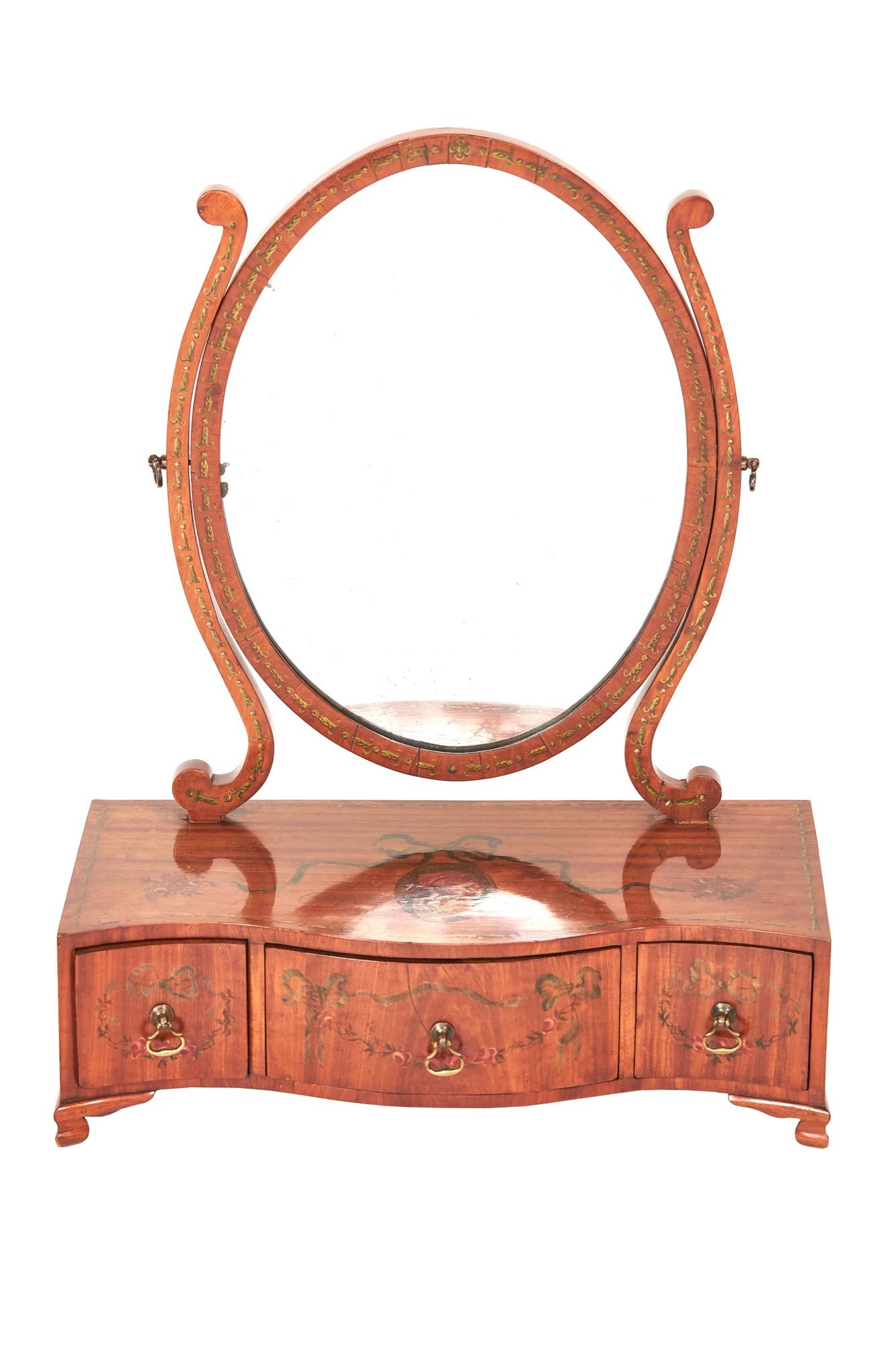 Fine Sheraton Revival Satinwood Painted Dressing Mirror (1 of 5)