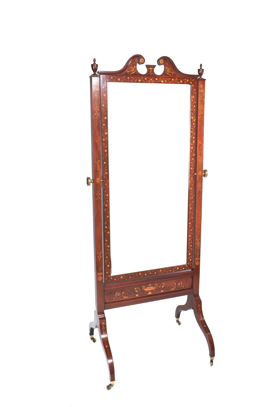 Fine Sheraton Style Inlaid Mahogany Cheval Mirror C.1880