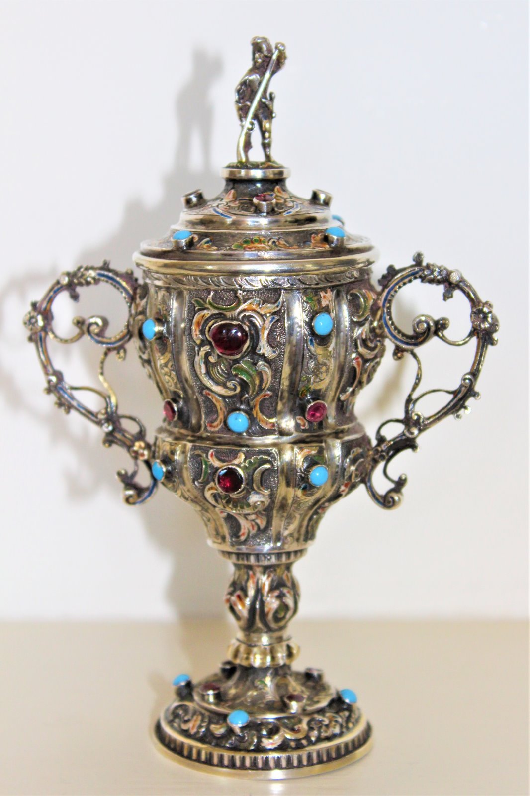 Fine Silver Cup with Lid Jewelled and Enamelled