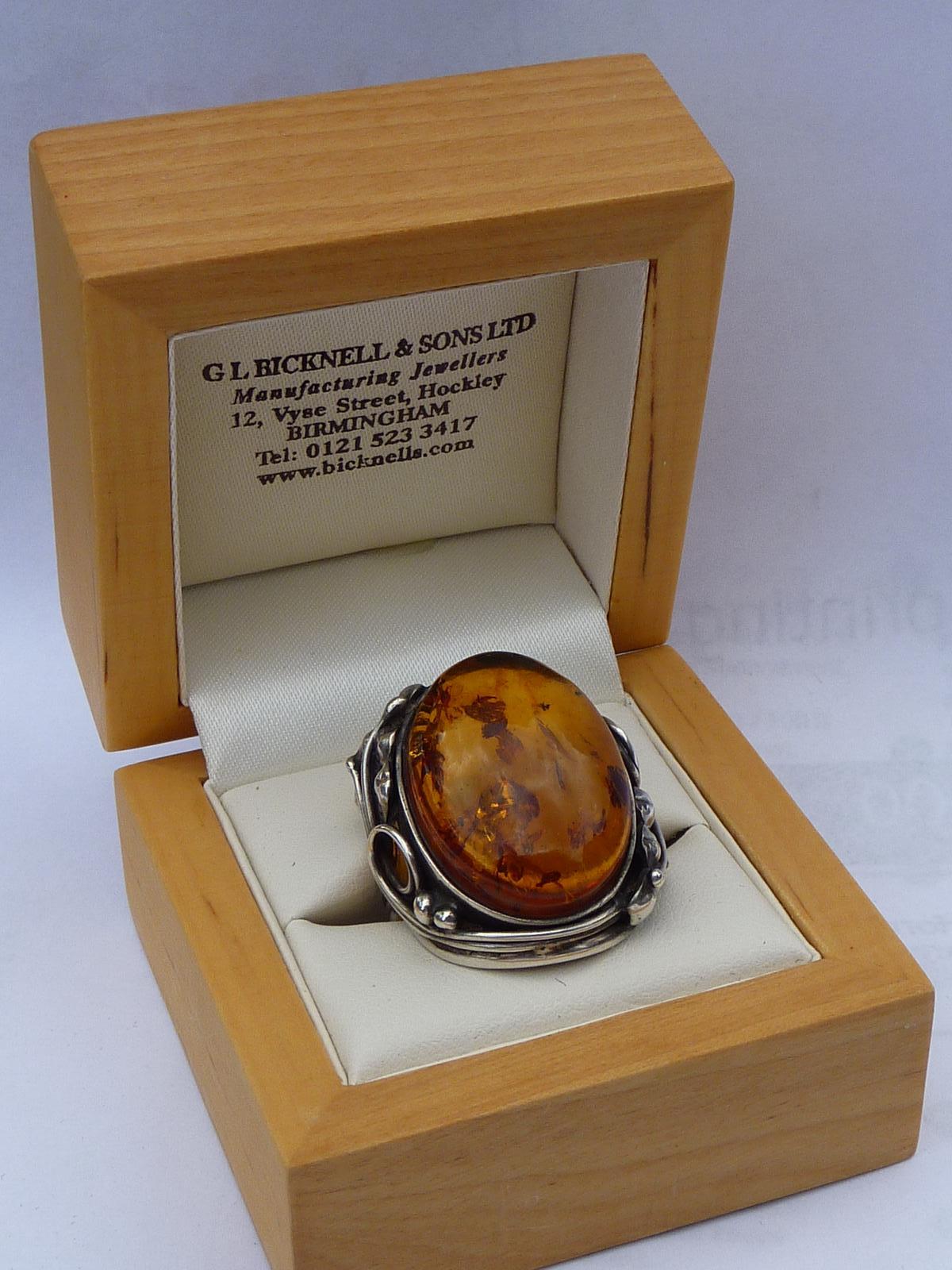 Fine Silversmith / Jeweller Made Silver & Amber Mounted Ring