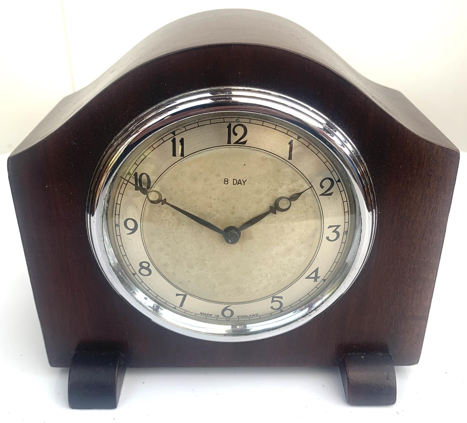 Fine Solid Mahogany Edwardian Timepiece Clock Hat Shaped with Silver Dial