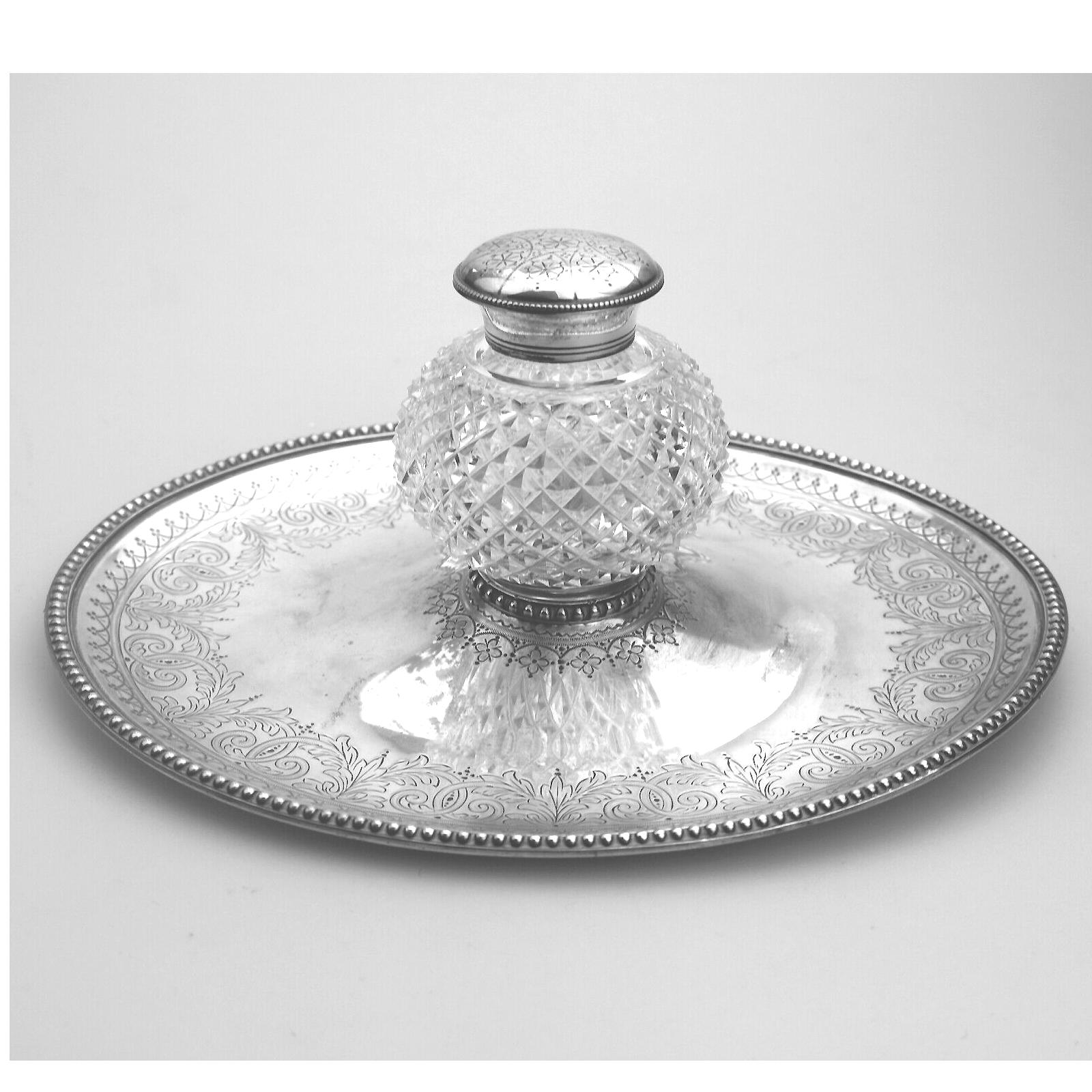 Fine Solid Silver Inkstand with Engraved Tray Elkington c.1877