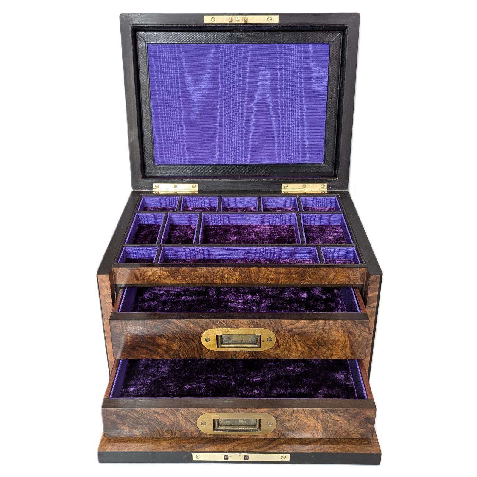 Fine Victorian Burr Walnut Jewellery Box by Mawson, Swan & Morgan
