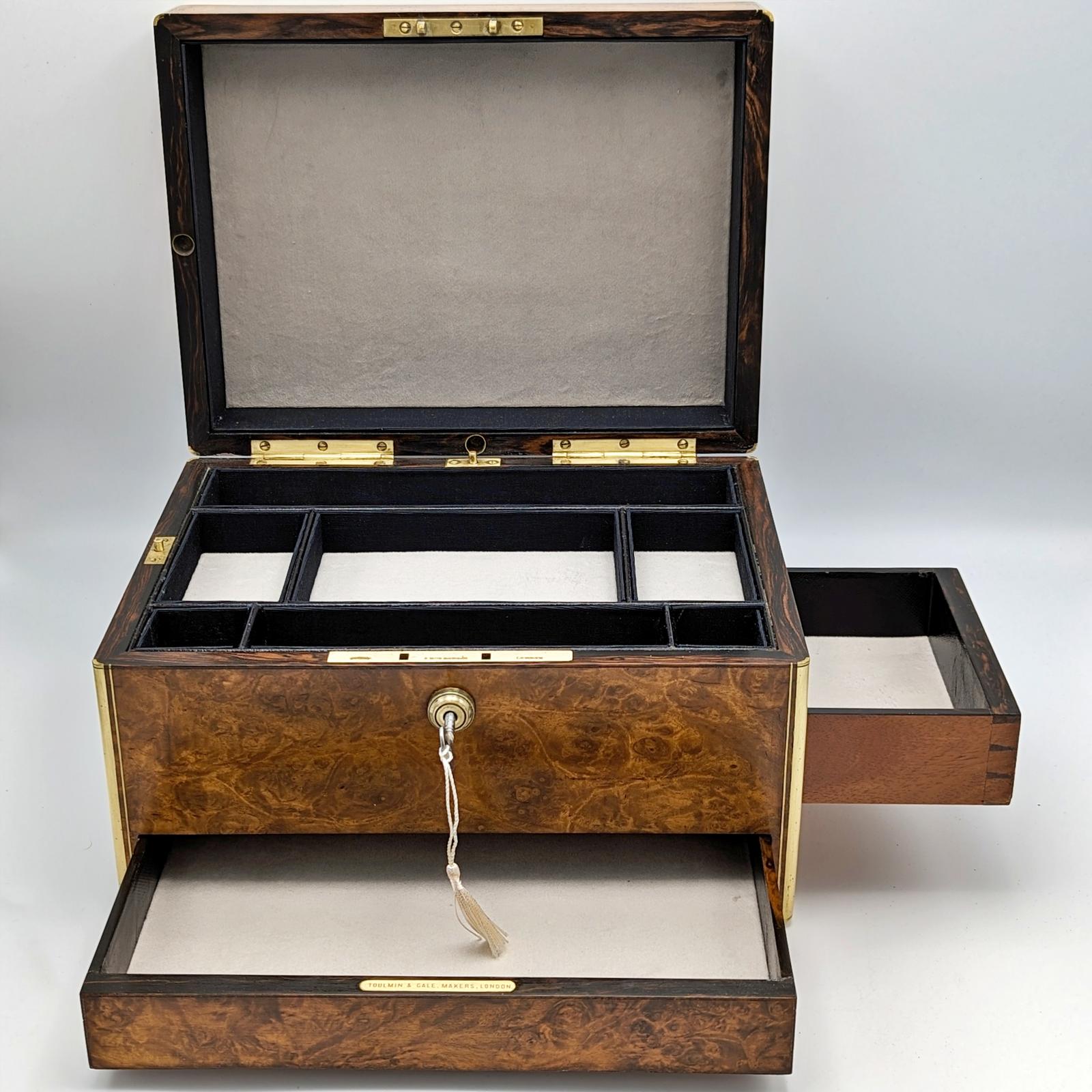 Fine Victorian Burr Walnut Jewellery Box by Toulmin & Gale