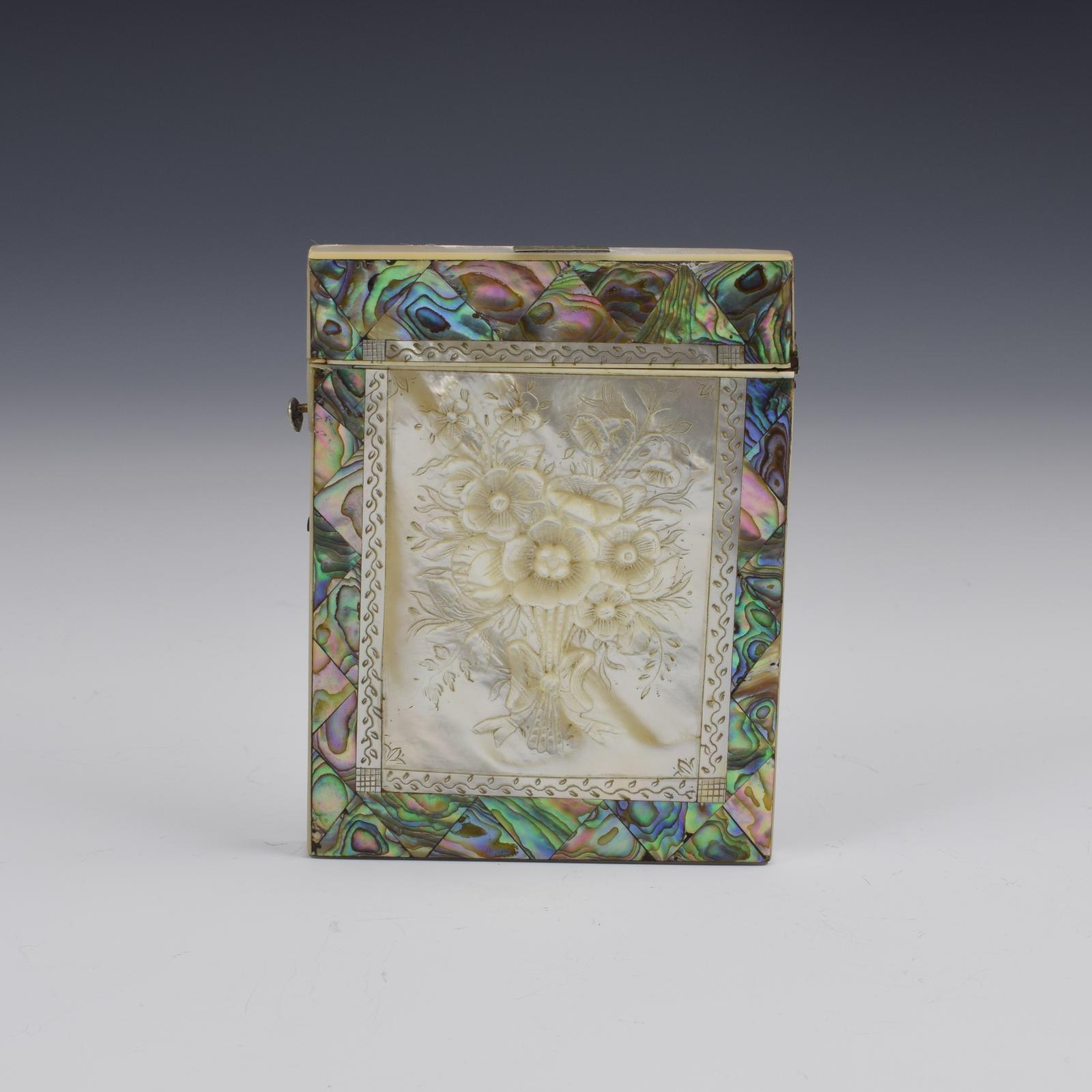 Fine Victorian Carved Mother of Pearl & Abalone Card Case