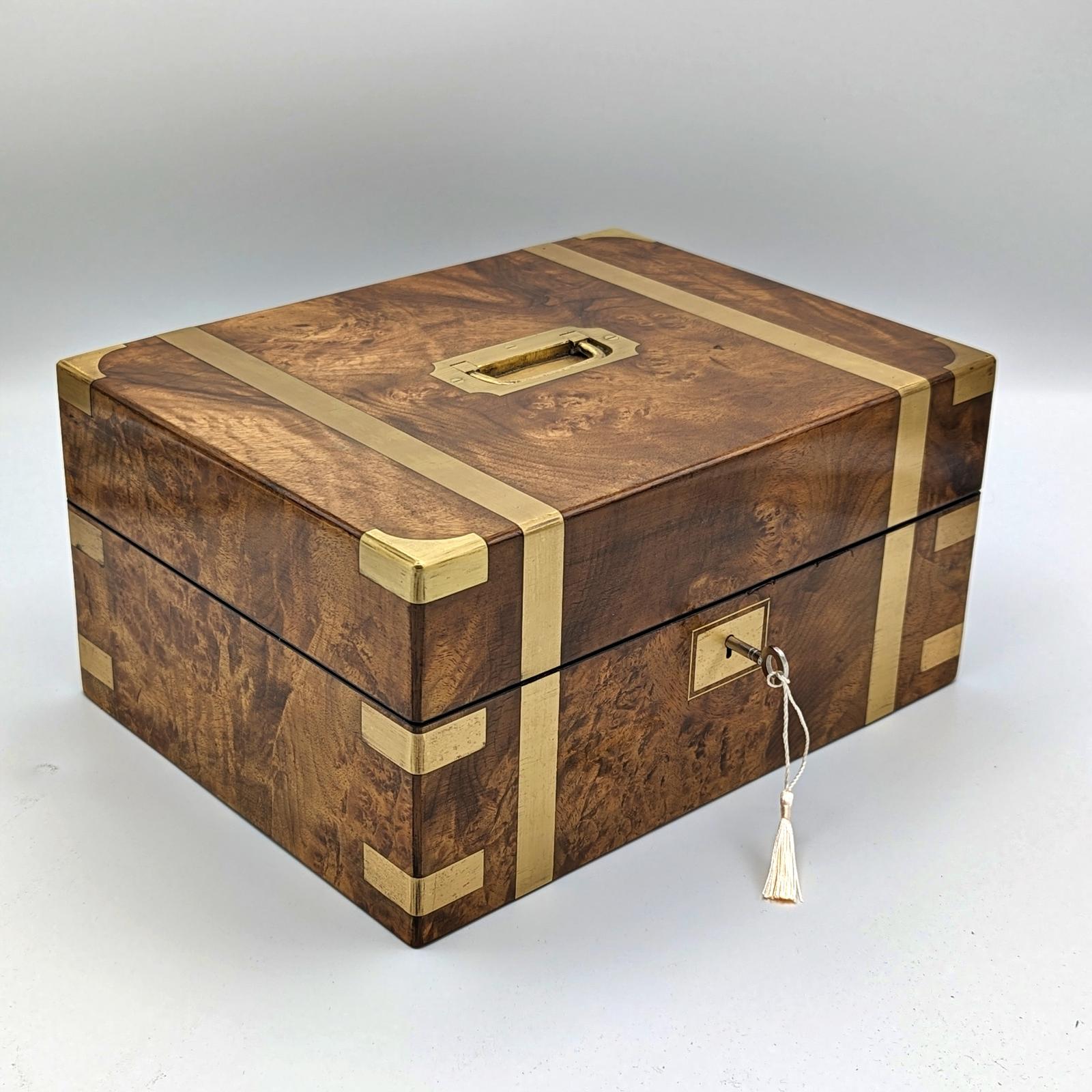 Fine Victorian Golden Walnut & Brass Inlaid Jewellery Box