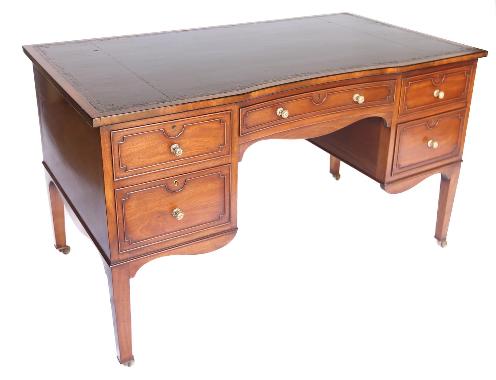 Fine Victorian Mahogany Centre 5 Drawer Kneehole Desk, c.1880s
