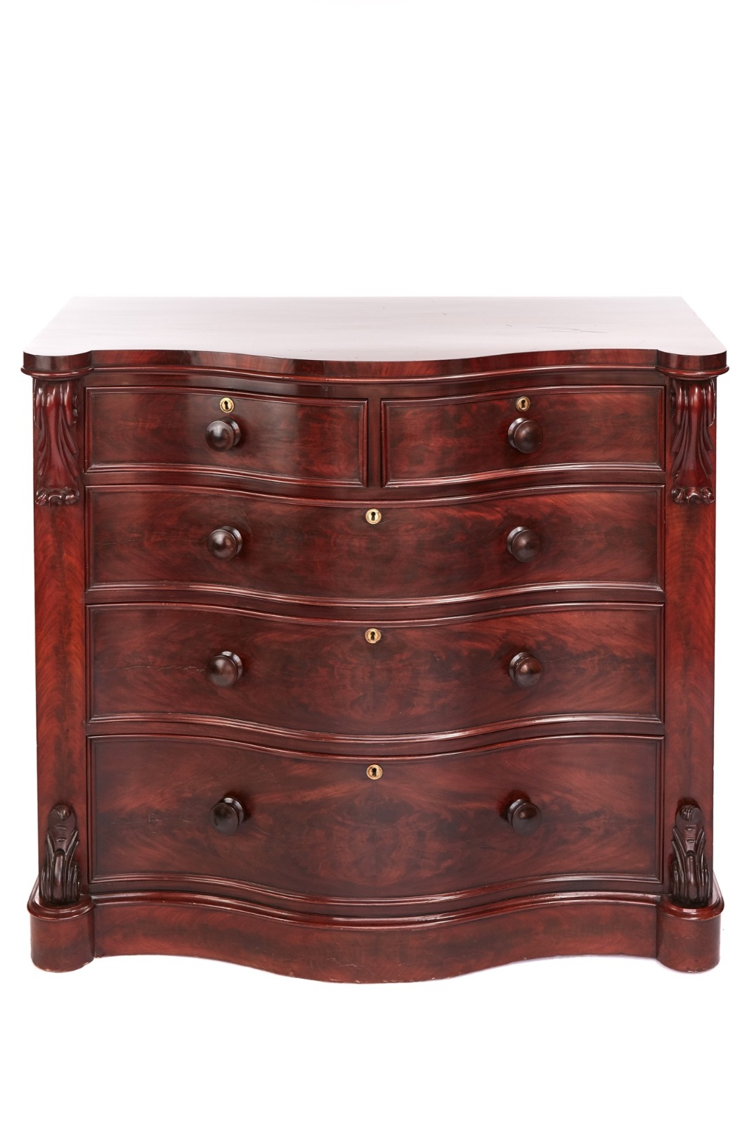 Fine Victorian Mahogany Serpentine 5 Drawer Chest (1 of 1)