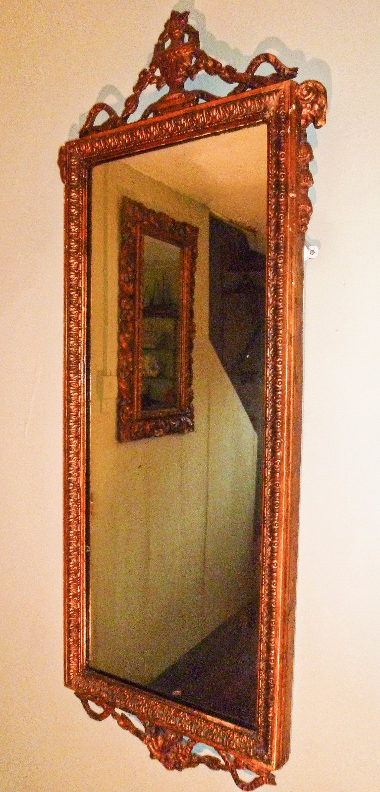 Fine Victorian Period Adamesque Gilt Wall or Pier Mirror RAms Heads Swags C.1890