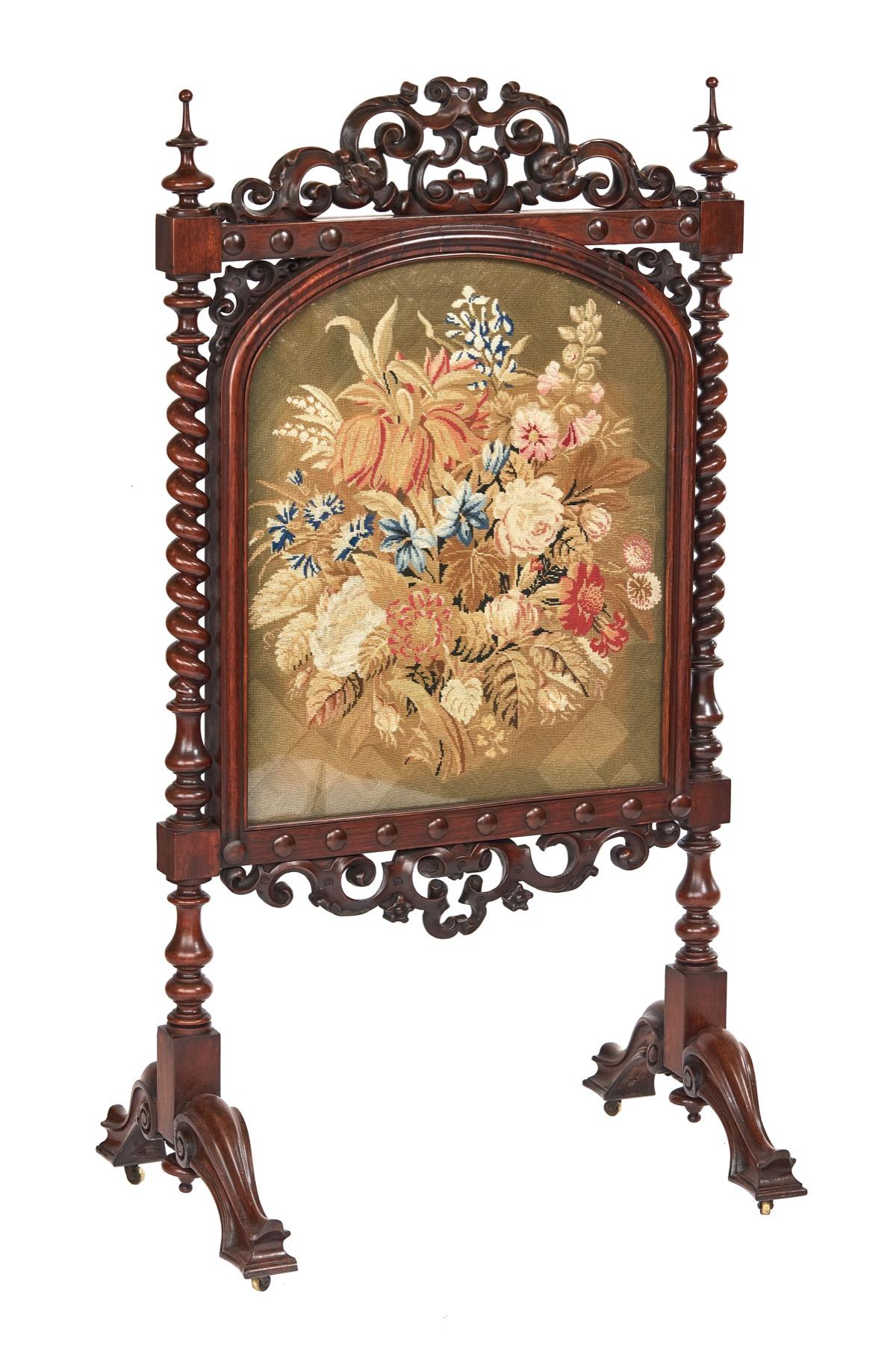 Fine Victorian Rosewood Carved Firescreen