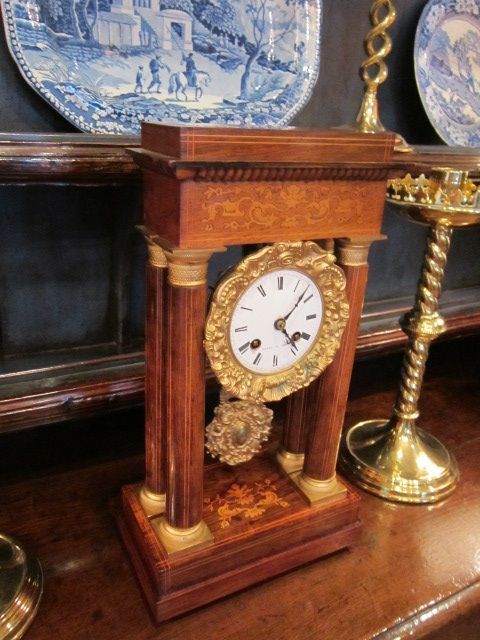 Fine Victorian Rosewood Inlaid Portico Clock c.1860