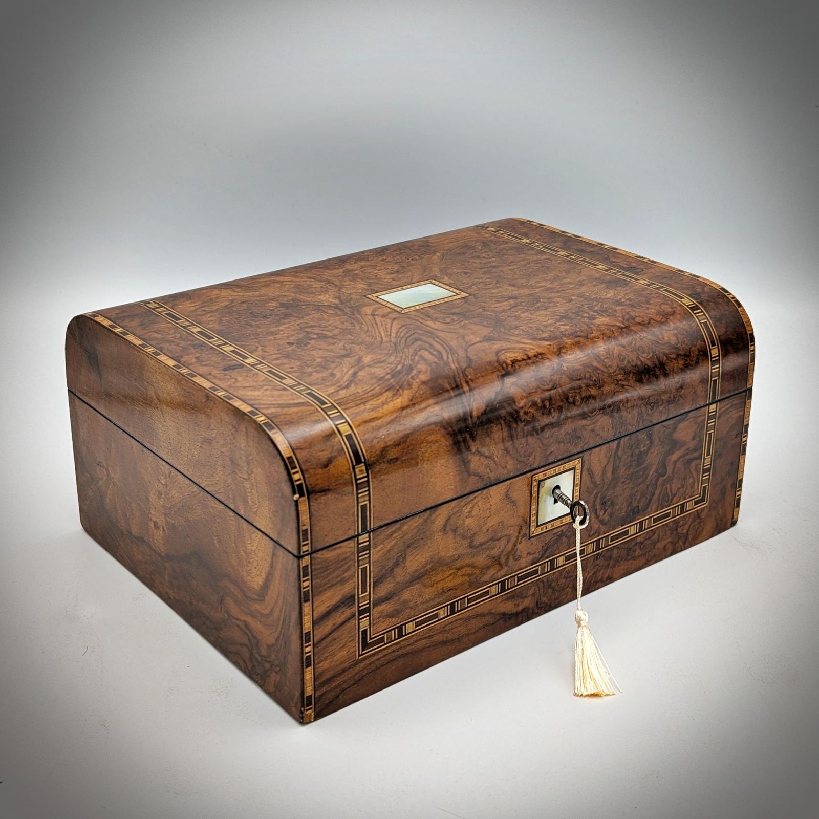 Fine Victorian Walnut & Inlaid Jewellery Box