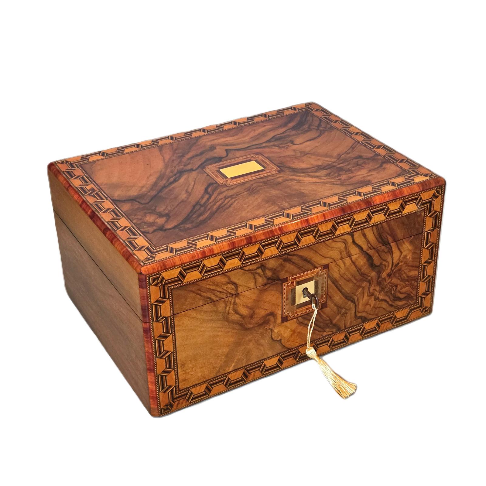 Fine Victorian Walnut & Inlaid Jewellery Box