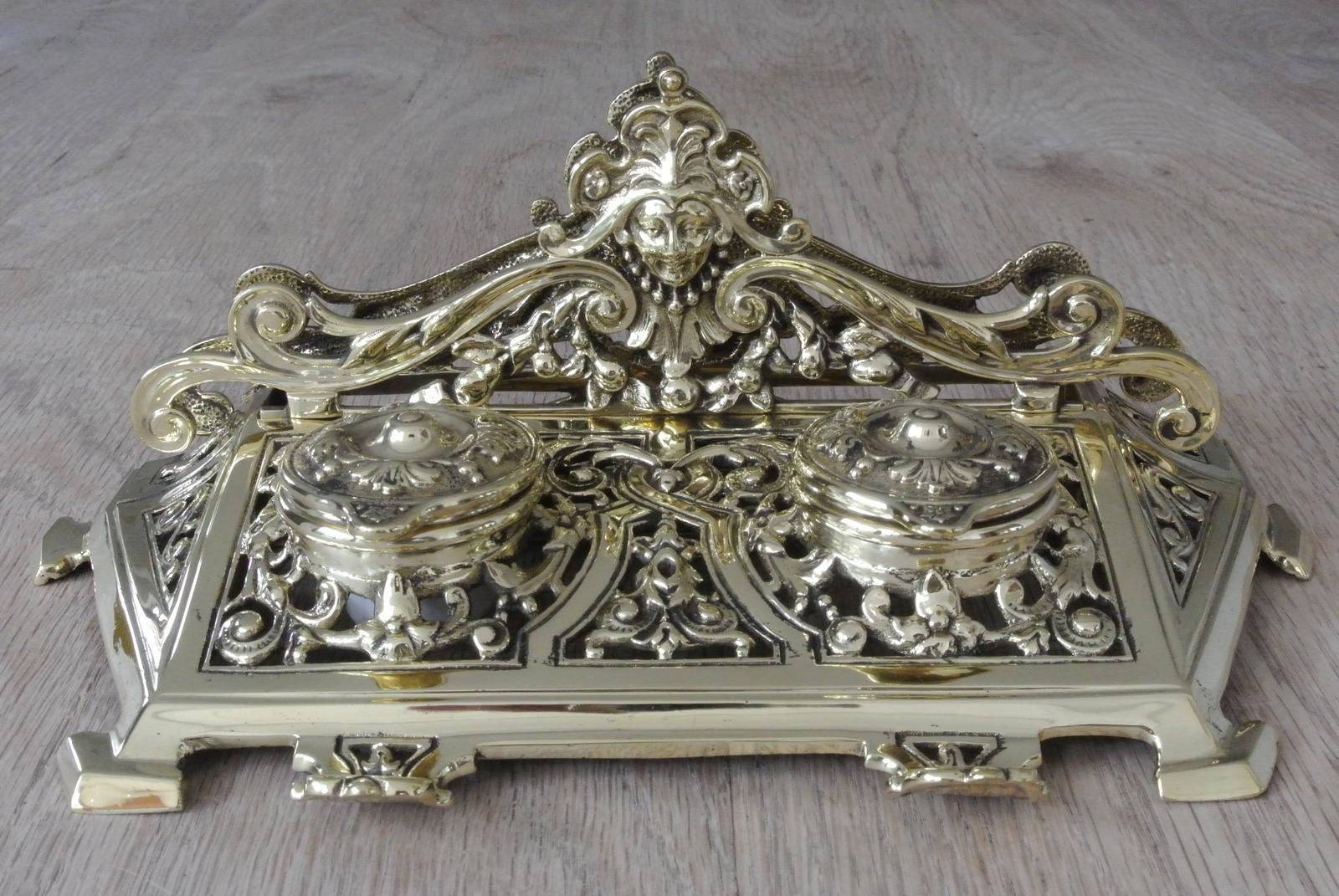 Fine Victorian William Tonks Brass Inkstand & Letter Rack Brass Inkwell c.1900