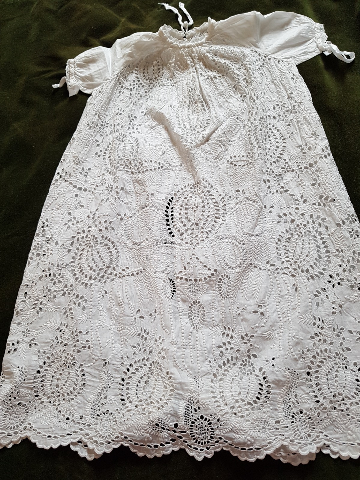 Fine White Cotton, Hand Embroidered Baby Christening Gown, Possibly Chikan Work C.1900