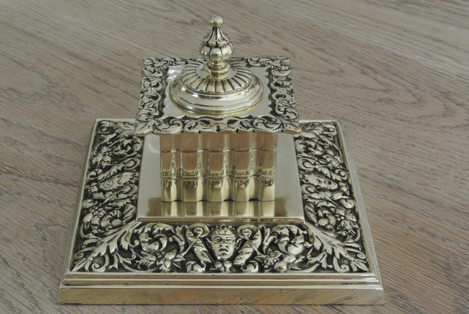 Fine William Large William Tonks & Sons “Green Man” Brass Inkwell c.1890