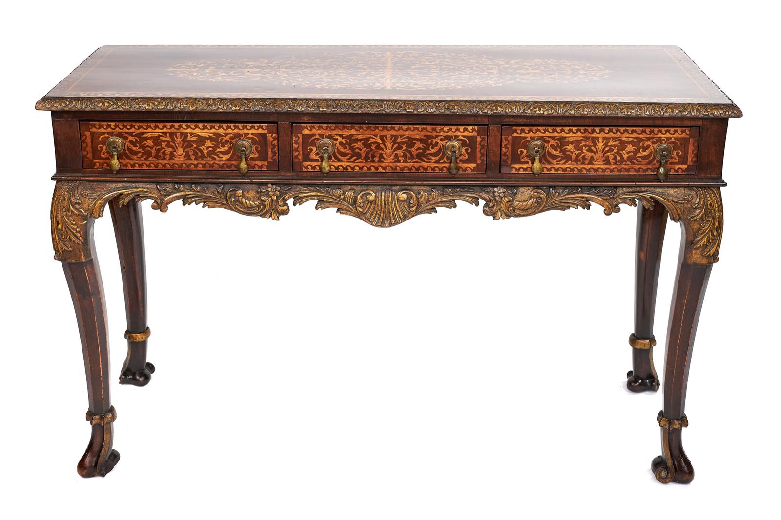 Fine William & Mary Revival Walnut & Carved 3 Drawer Inlaid Side Table c.1900 (1 of 10)