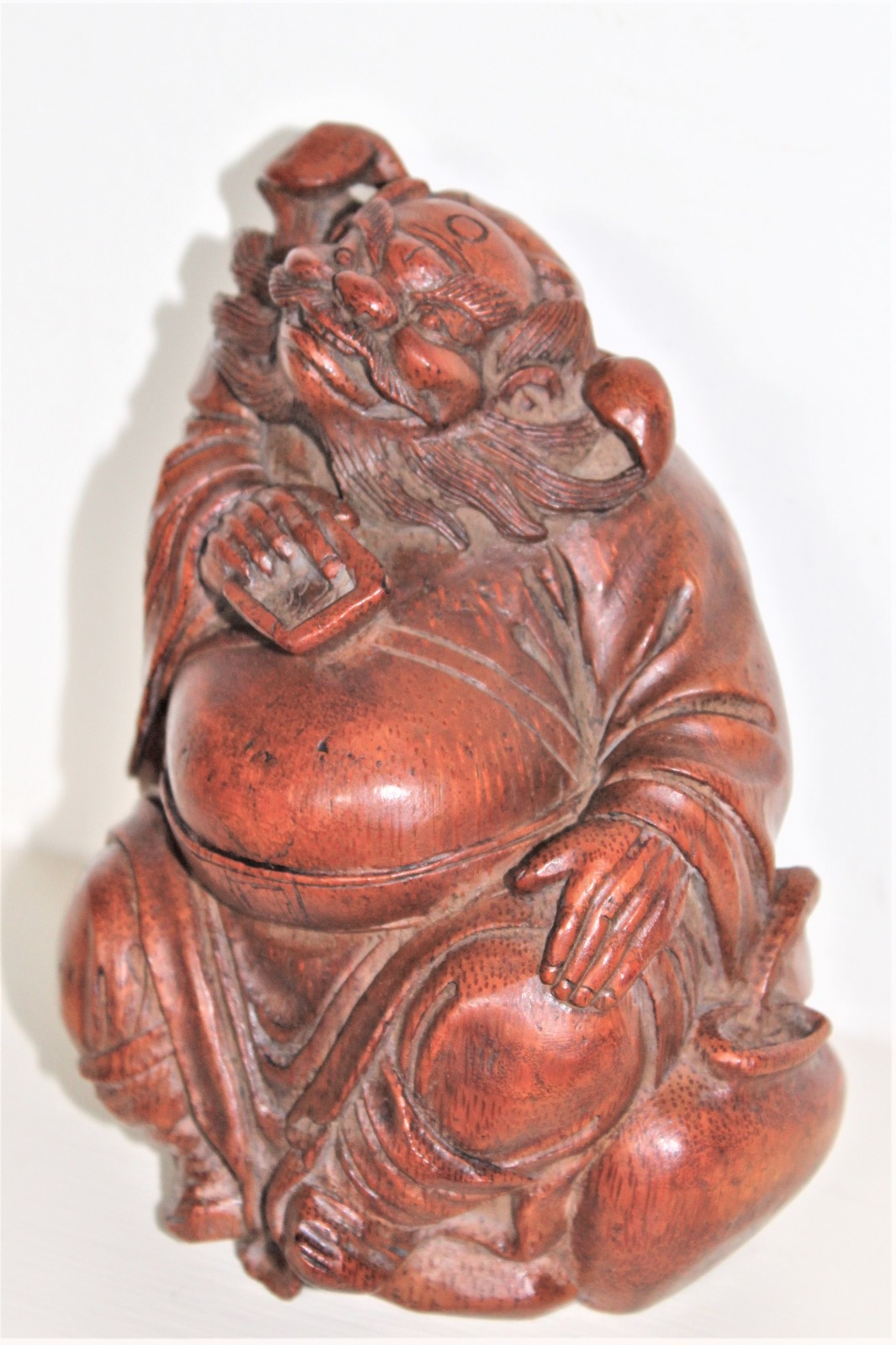 Finely Carved Bamboo Oriental Deity Figure of Nice Chunky Proportions Good Patina