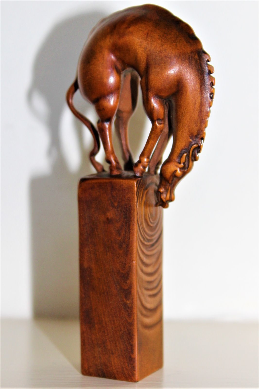 Finely Carved Boxwood Netsuke Seal Depicting a Horse Drinking From a Well Meiji Period 1868 To 1912