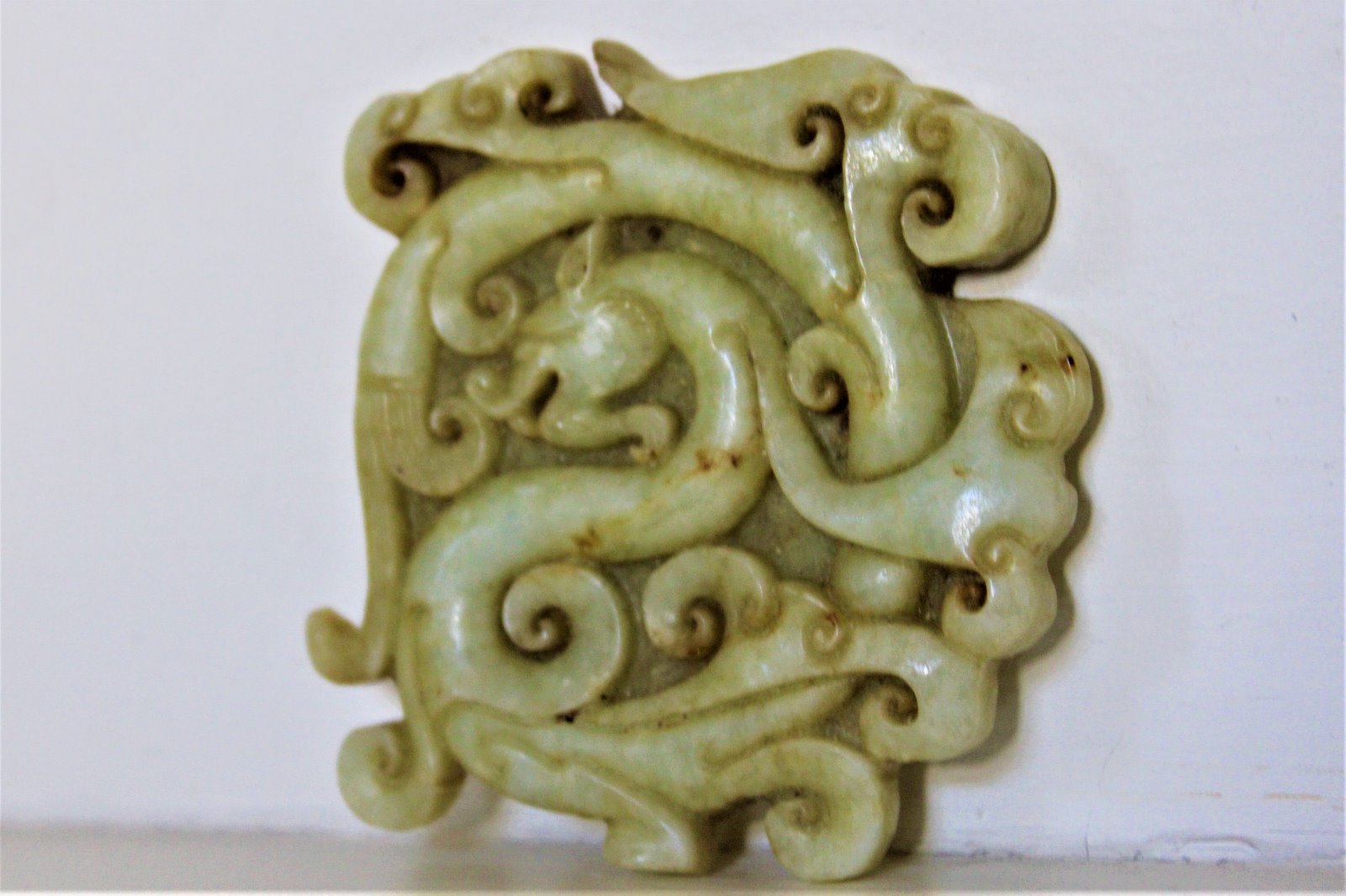 Finely Carved Chinese Jade Tablet Depicting a Coiled Dragon c.1880 to 1920