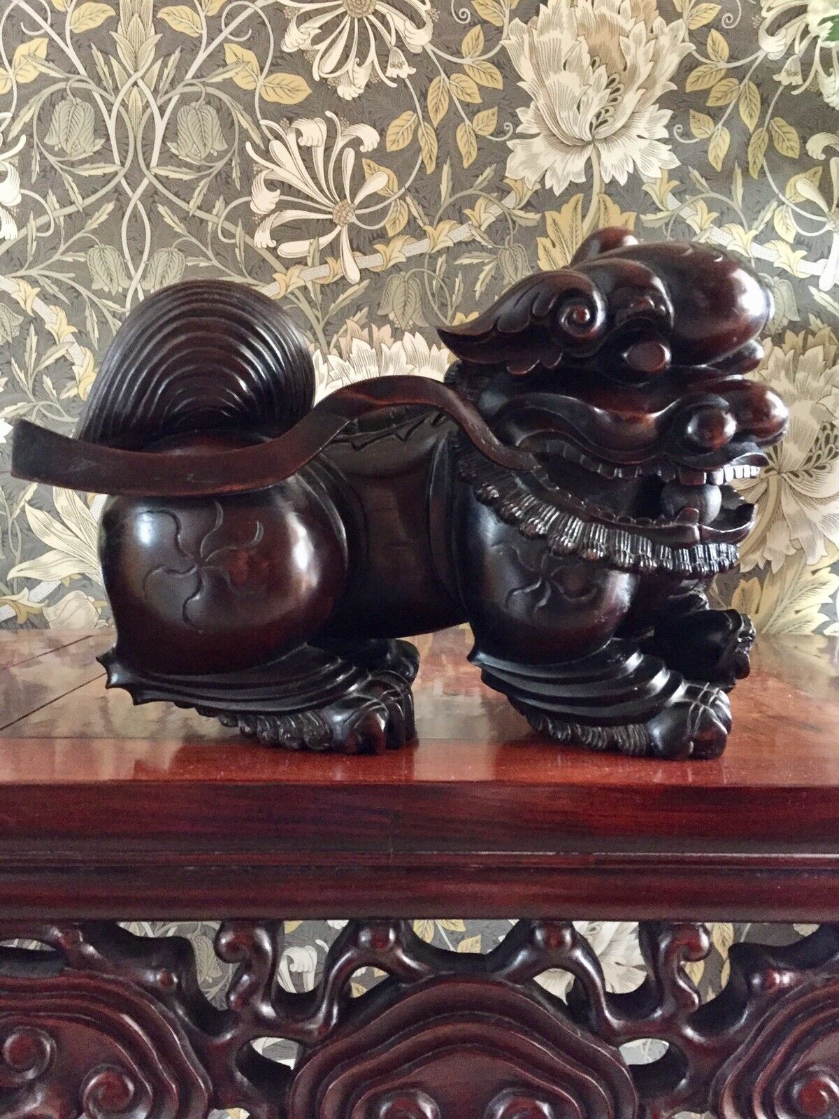 Finely Carved Hardwood Chinese Dog of Fo, Guardian Lion Sculpture