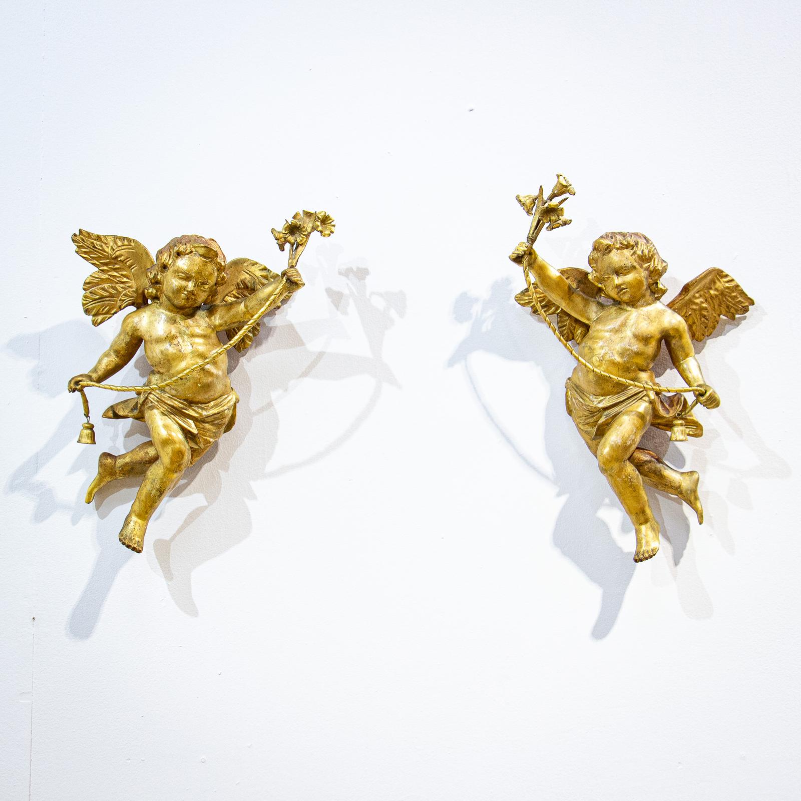 Finely Carved Pair of 18th Century Giltwood Italian Cherubs