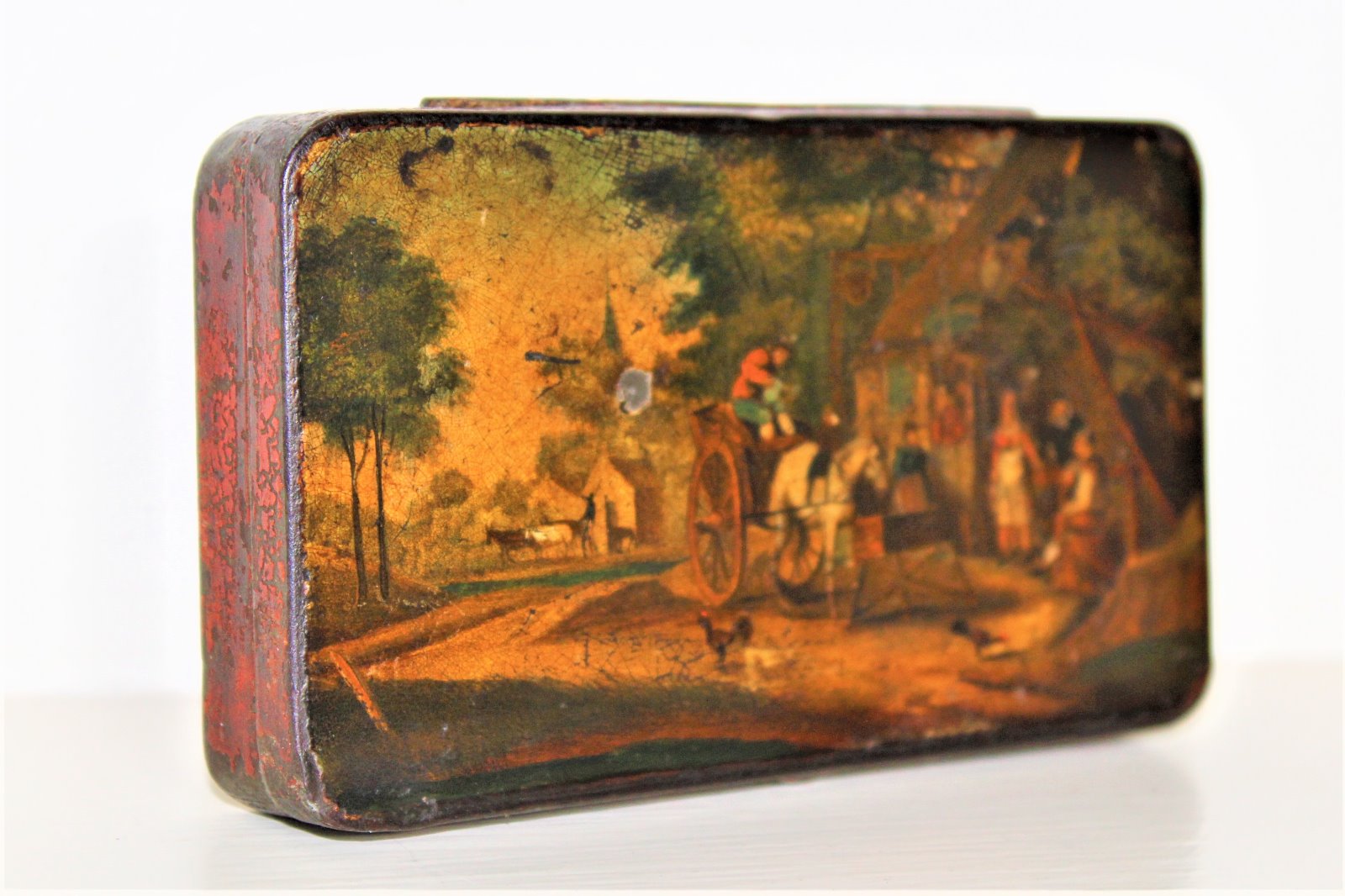 Finely Hand Painted Tole Ware Tobacco Box English c.1830 to 1860
