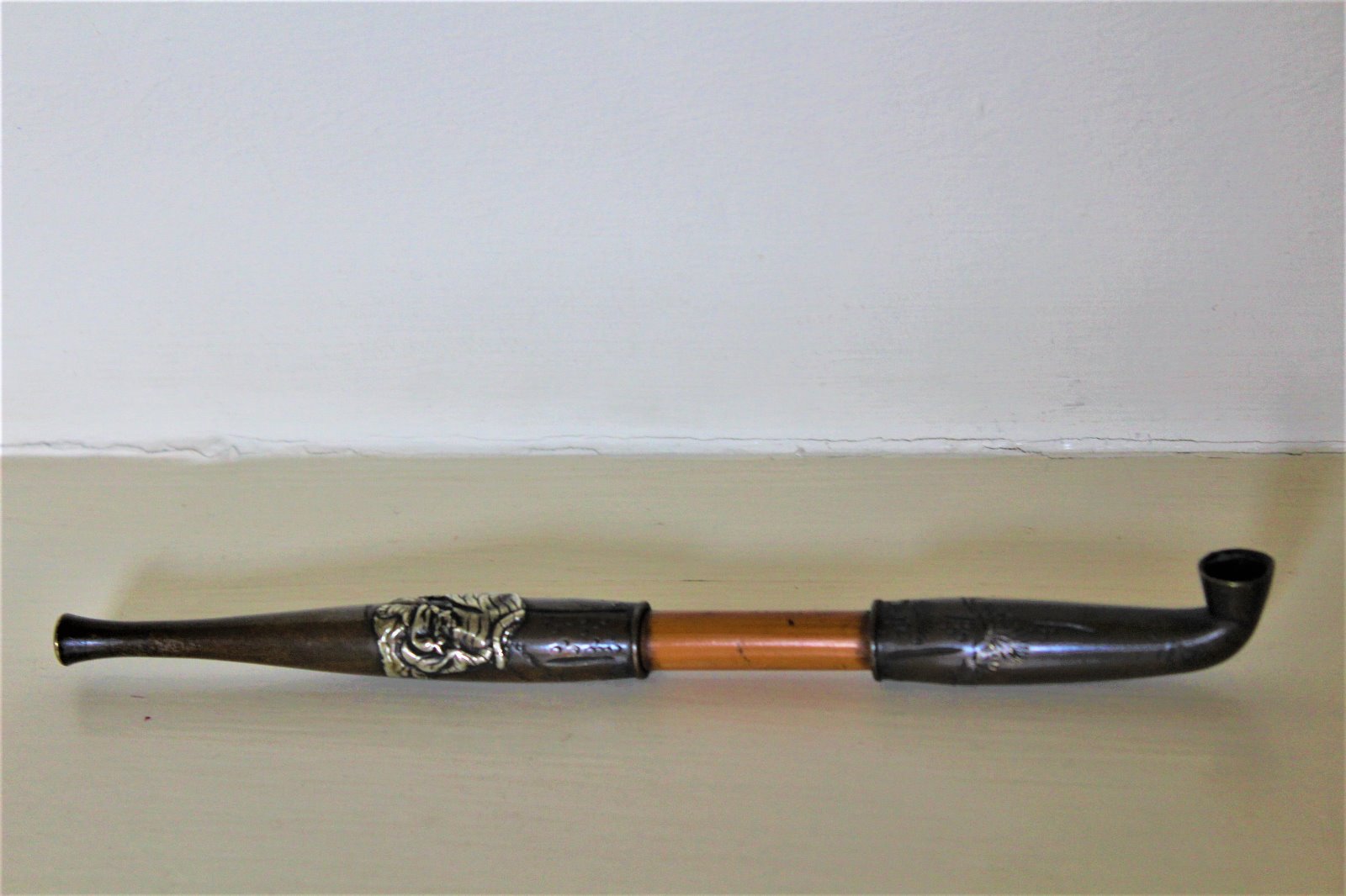Finely Made Japanese Bronze Bamboo & Silver Opium Pipe