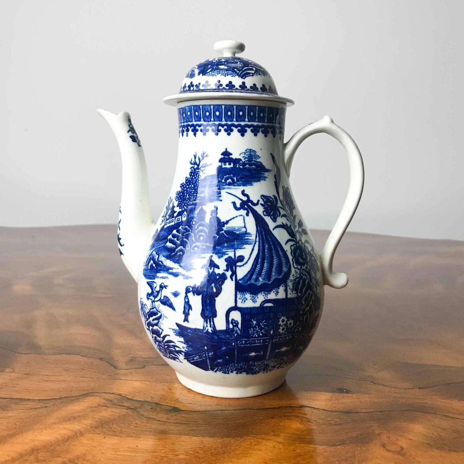 First Period Worcester Coffee Pot in The Fisherman Pattern