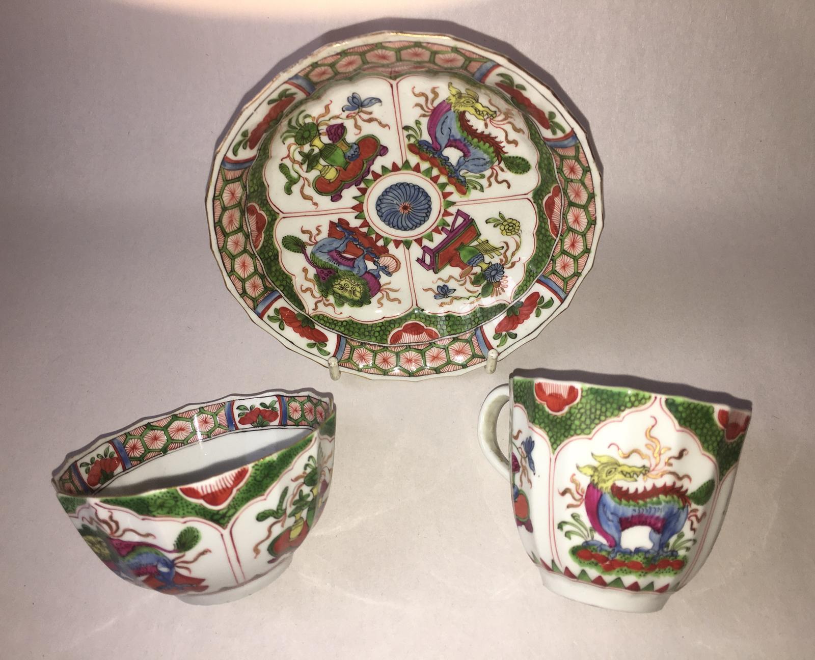 First Period Worcester 'Dragons in Compartments' Trio