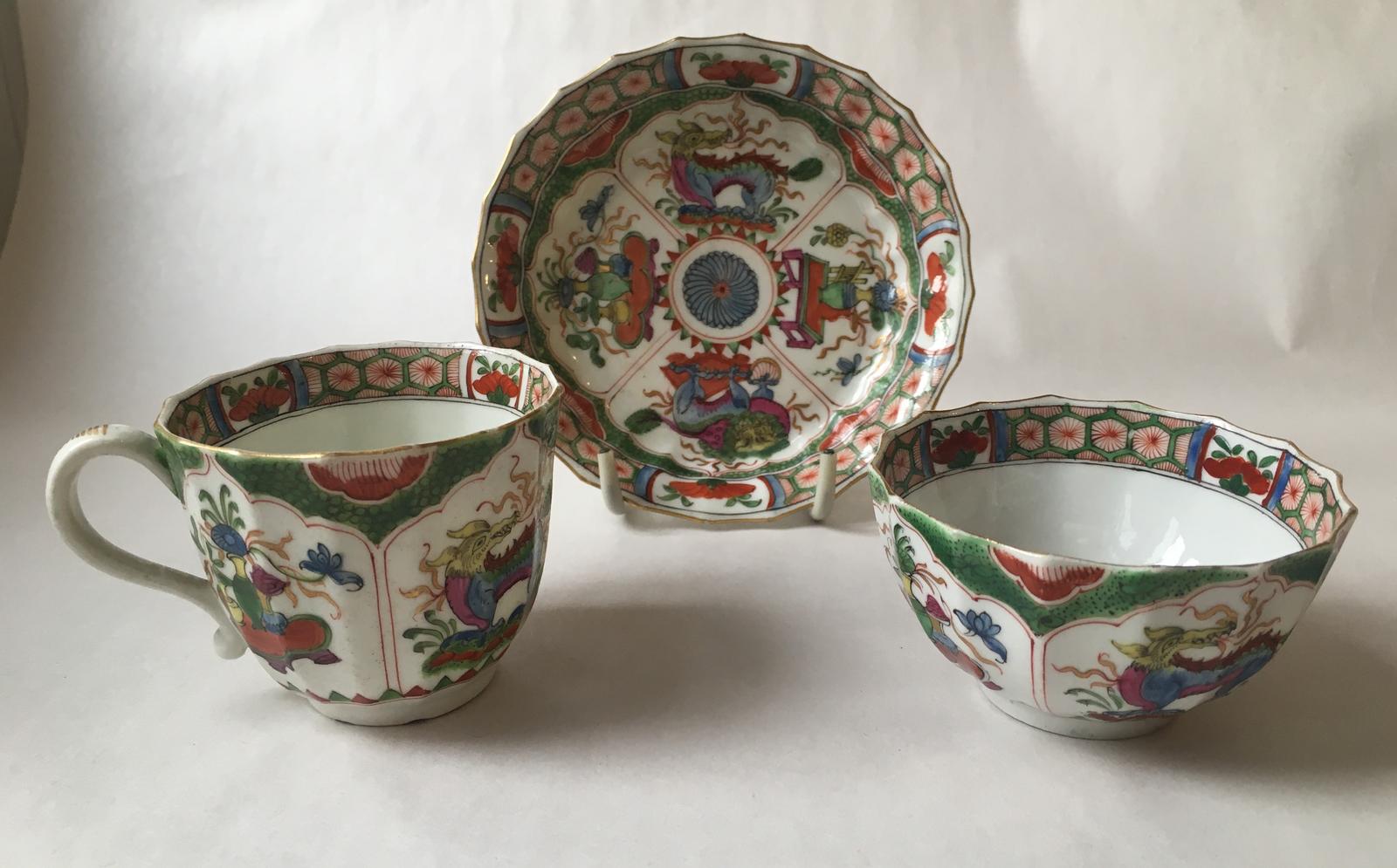 First Period Worcester 'Dragons on Compartments' Trio