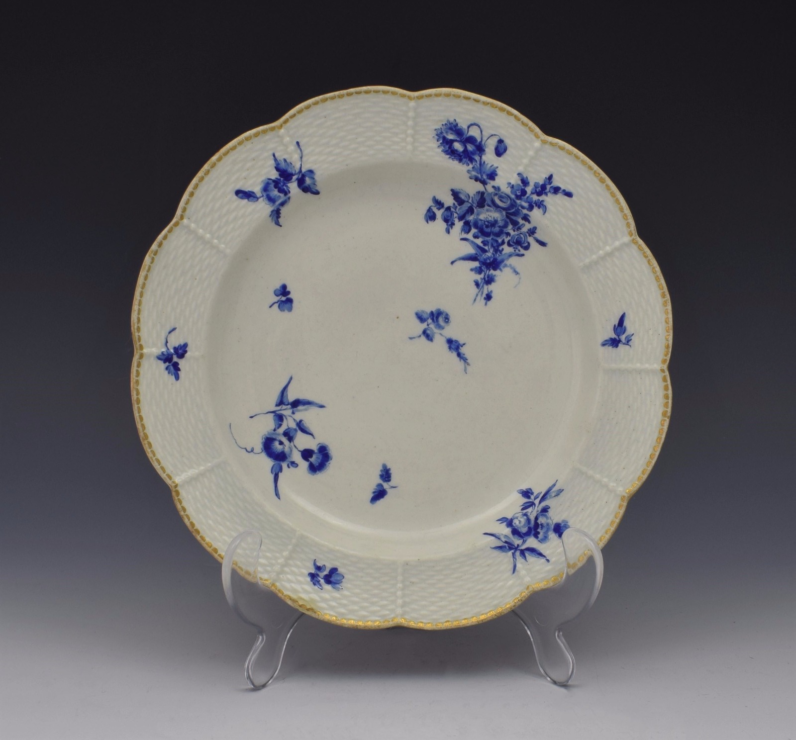 First Period Worcester Dry Blue Lobed Dessert Plate c.1775