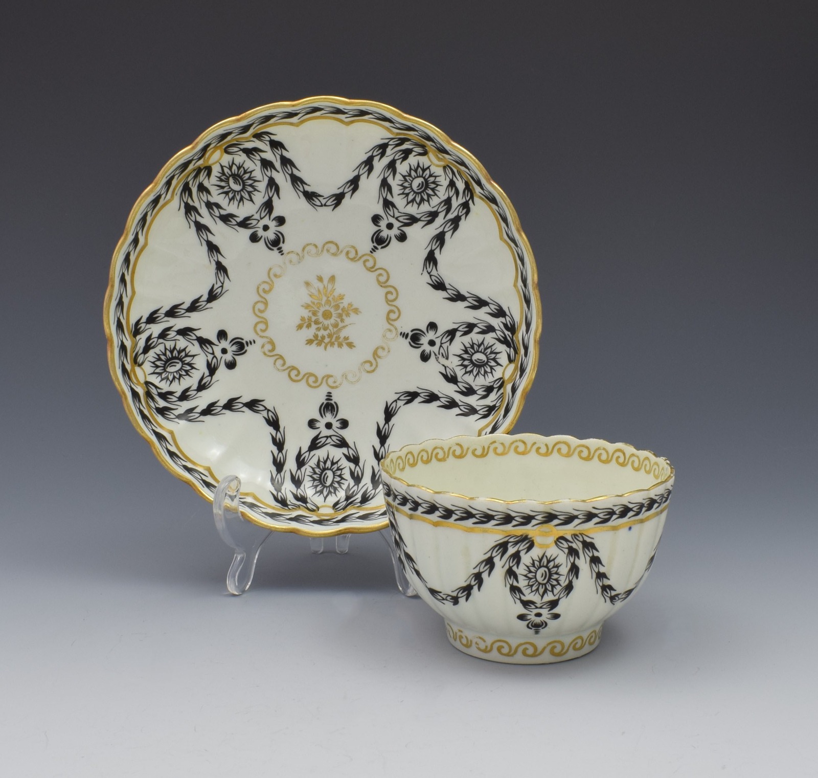 First Period Worcester Fluted Tea Bowl & Saucer C.1780