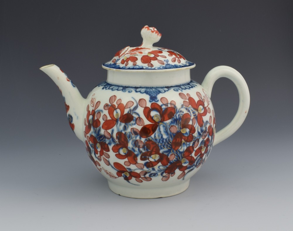 First Period Worcester Globular Teapot Clobbered Mansfield Pattern