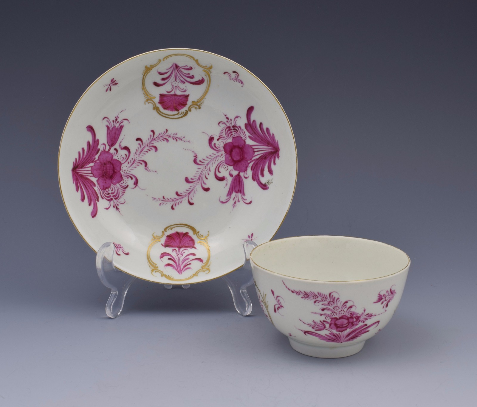 First Period Worcester Meissen Style Puce Tea Bowl & Saucer