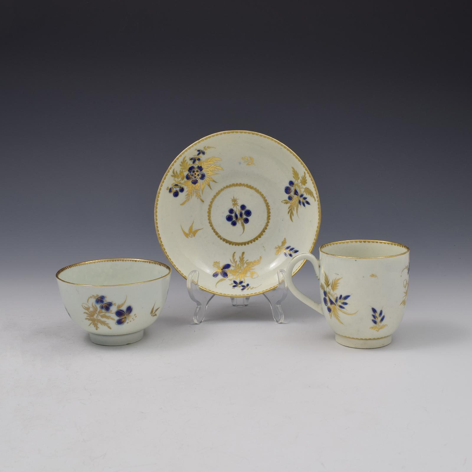 First Period Worcester Porcelain Cup & Saucer Trio c.1785