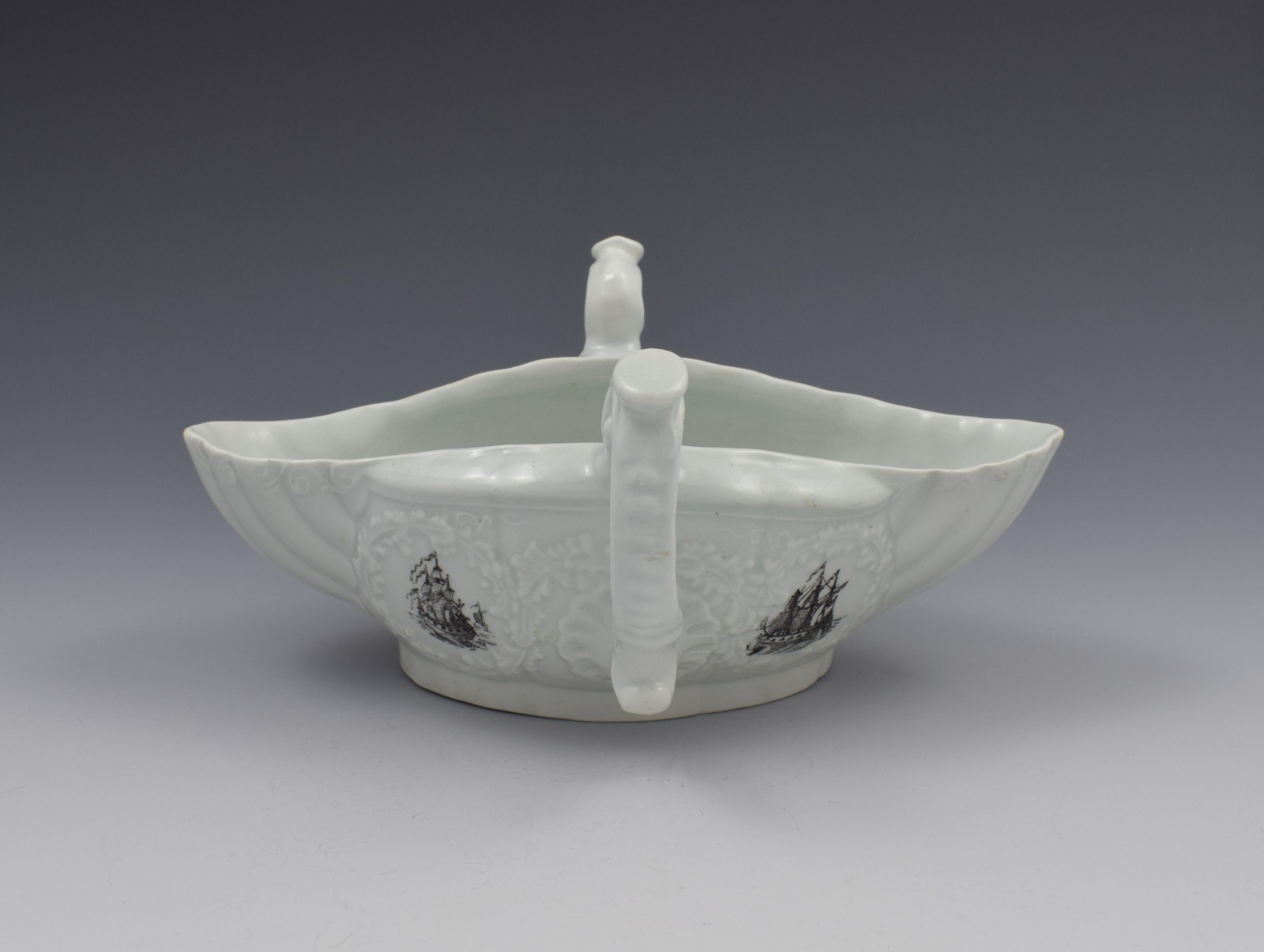 First Period Worcester Porcelain Double Handled Sauce Boat C.1755