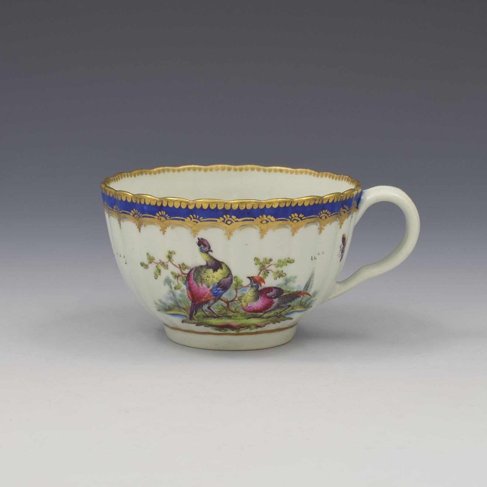 First Period Worcester Porcelain Fancy Birds Fluted Tea Cup c.1785