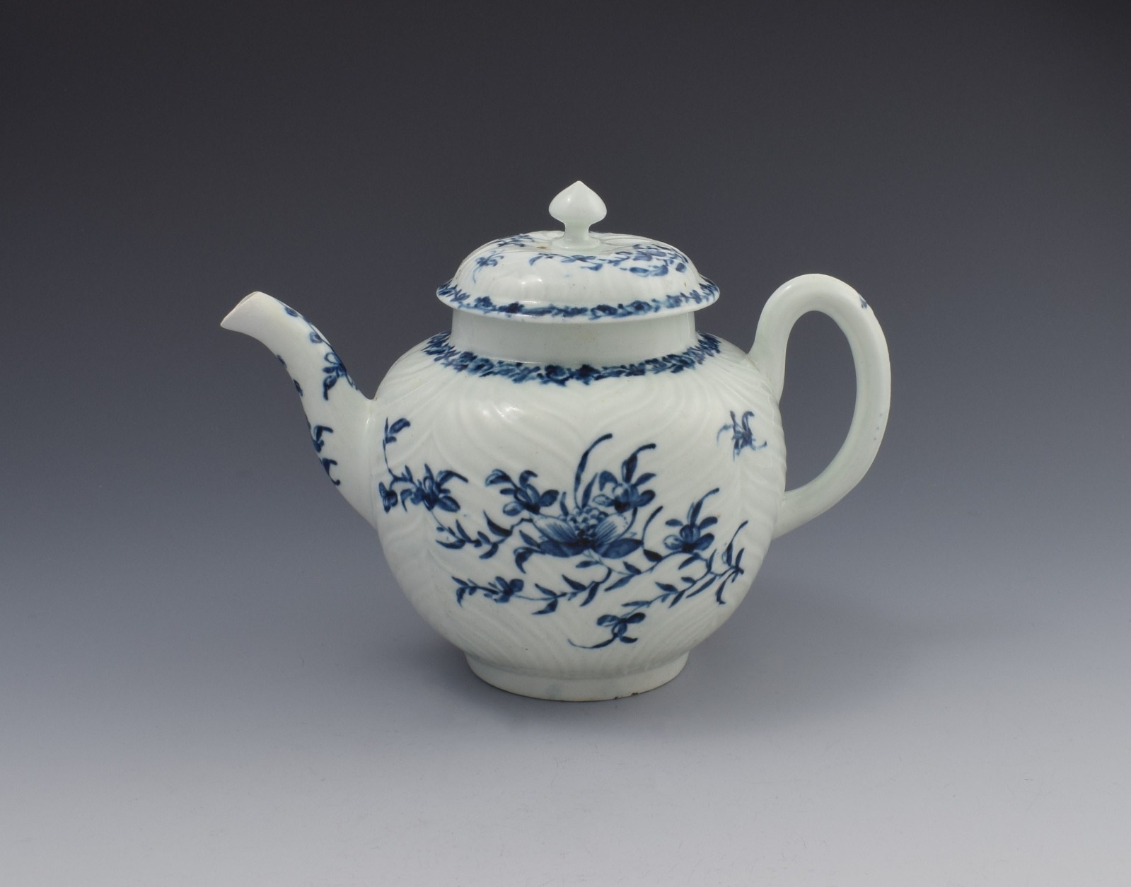 First Period Worcester Porcelain Feather Moulded Teapot (1 of 1)
