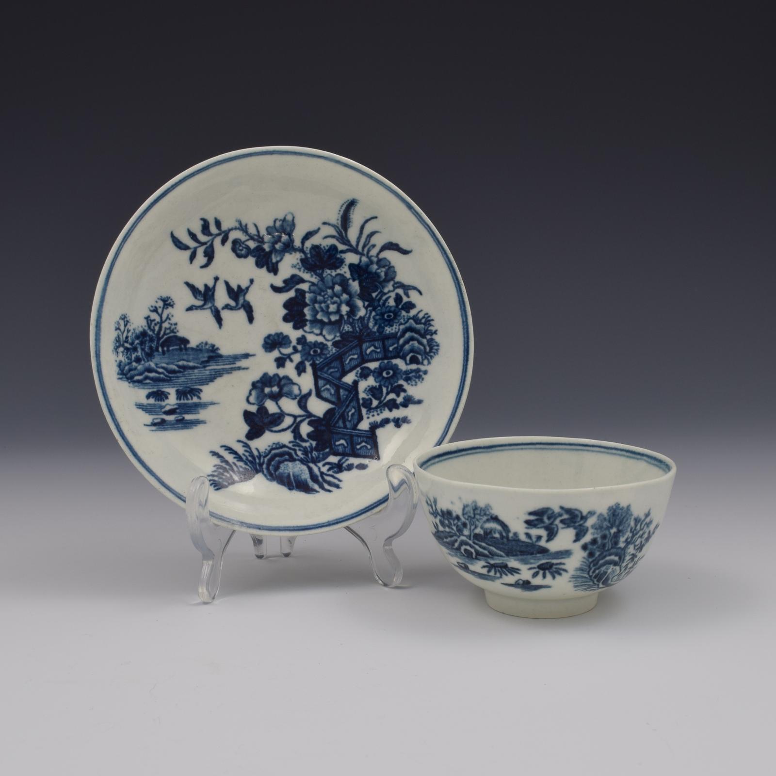 First Period Worcester Porcelain Fence Pattern Tea Bowl & Saucer c.1770