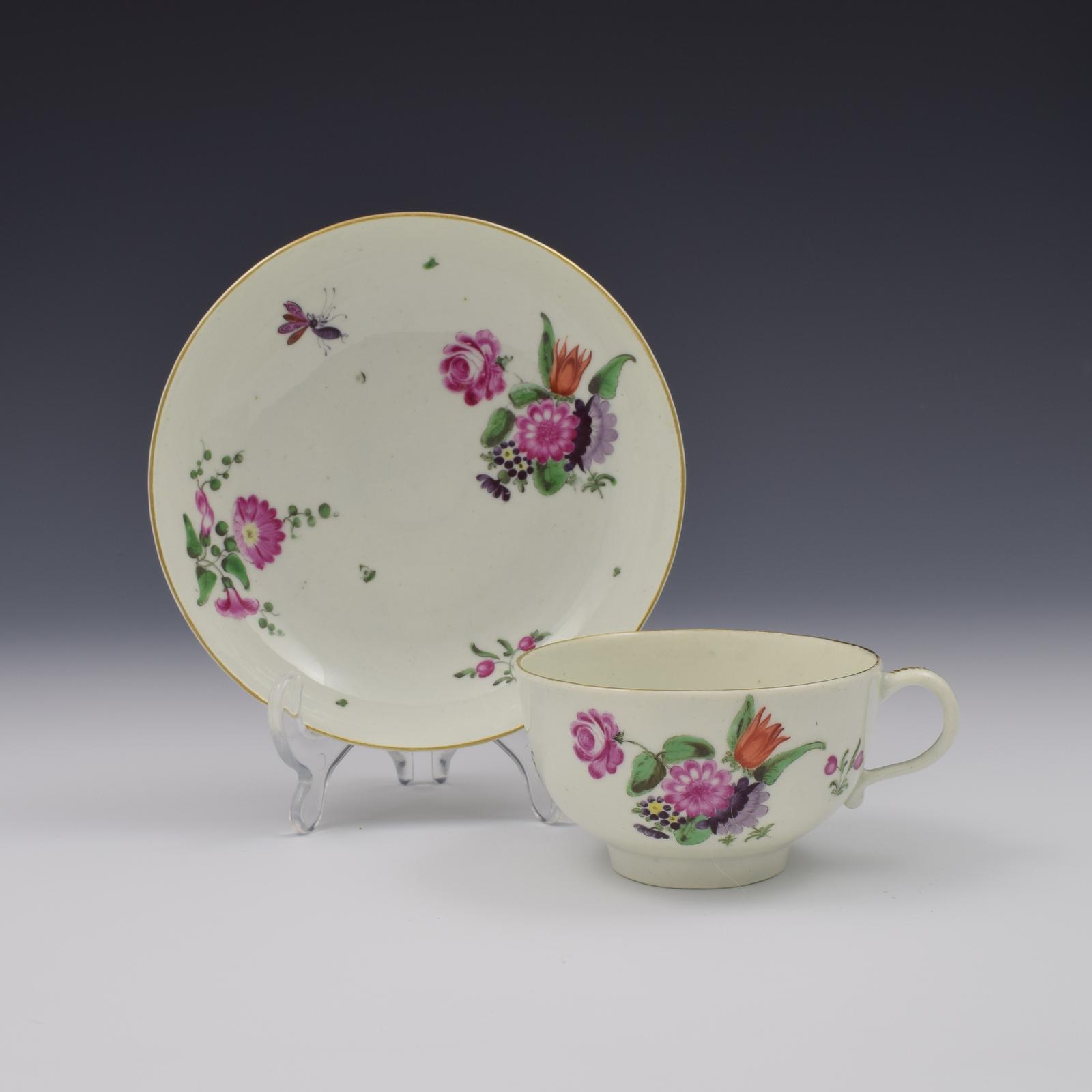 First Period Worcester Porcelain Floral Tea Cup & Saucer c.1770