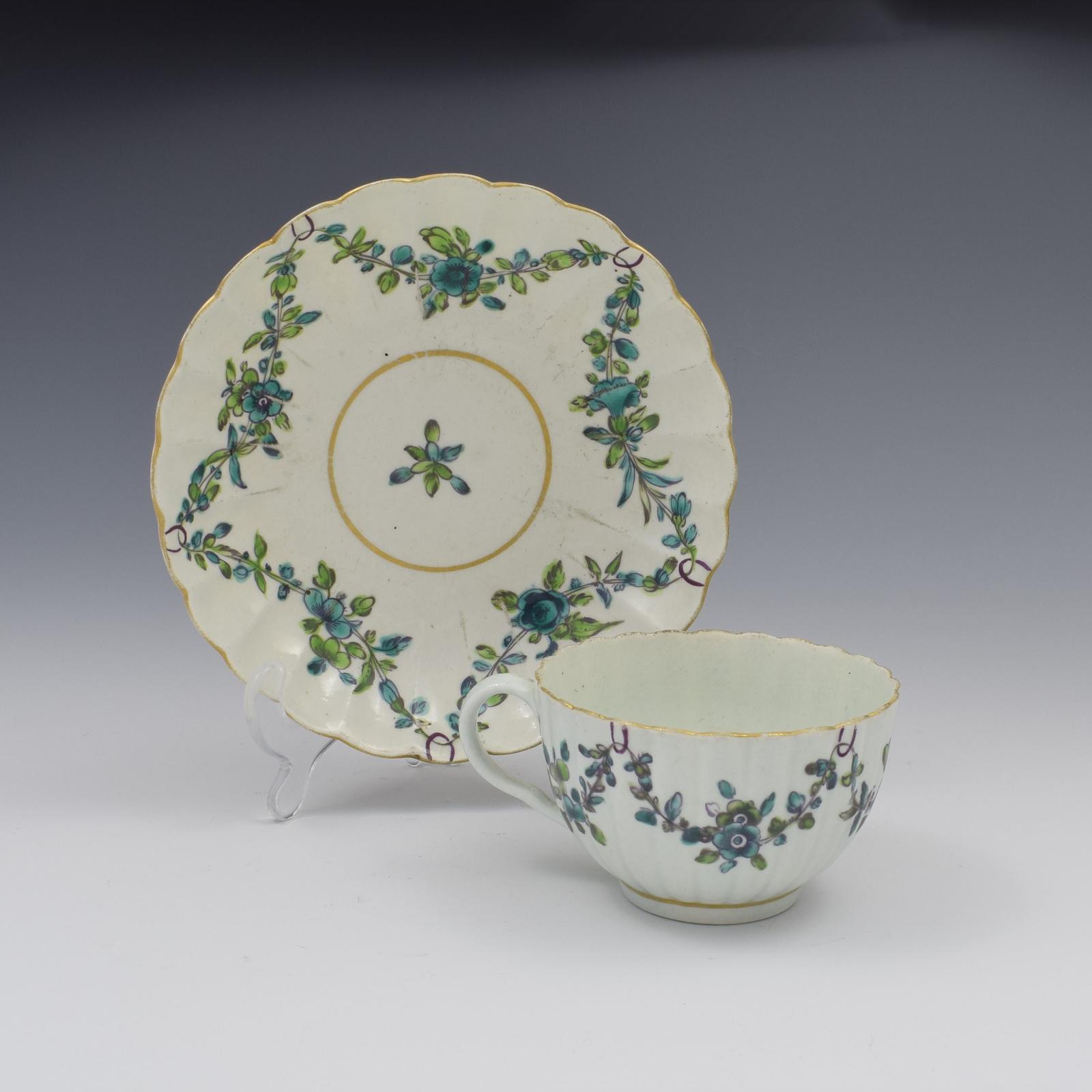 First Period Worcester Porcelain Fluted Cup & Saucer c.1770