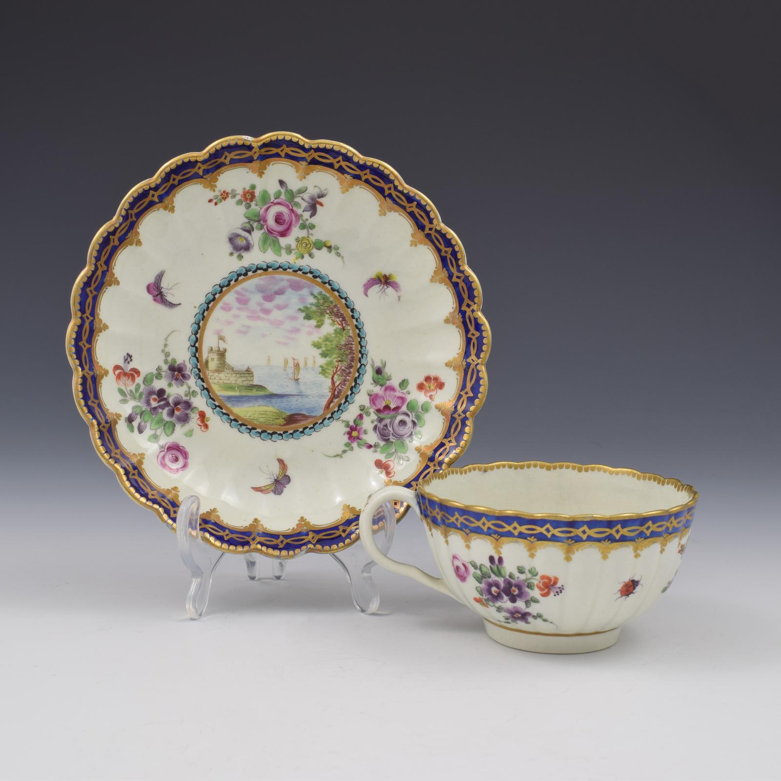 First Period Worcester Porcelain Fluted Dalhousie Cup & Saucer c.1780