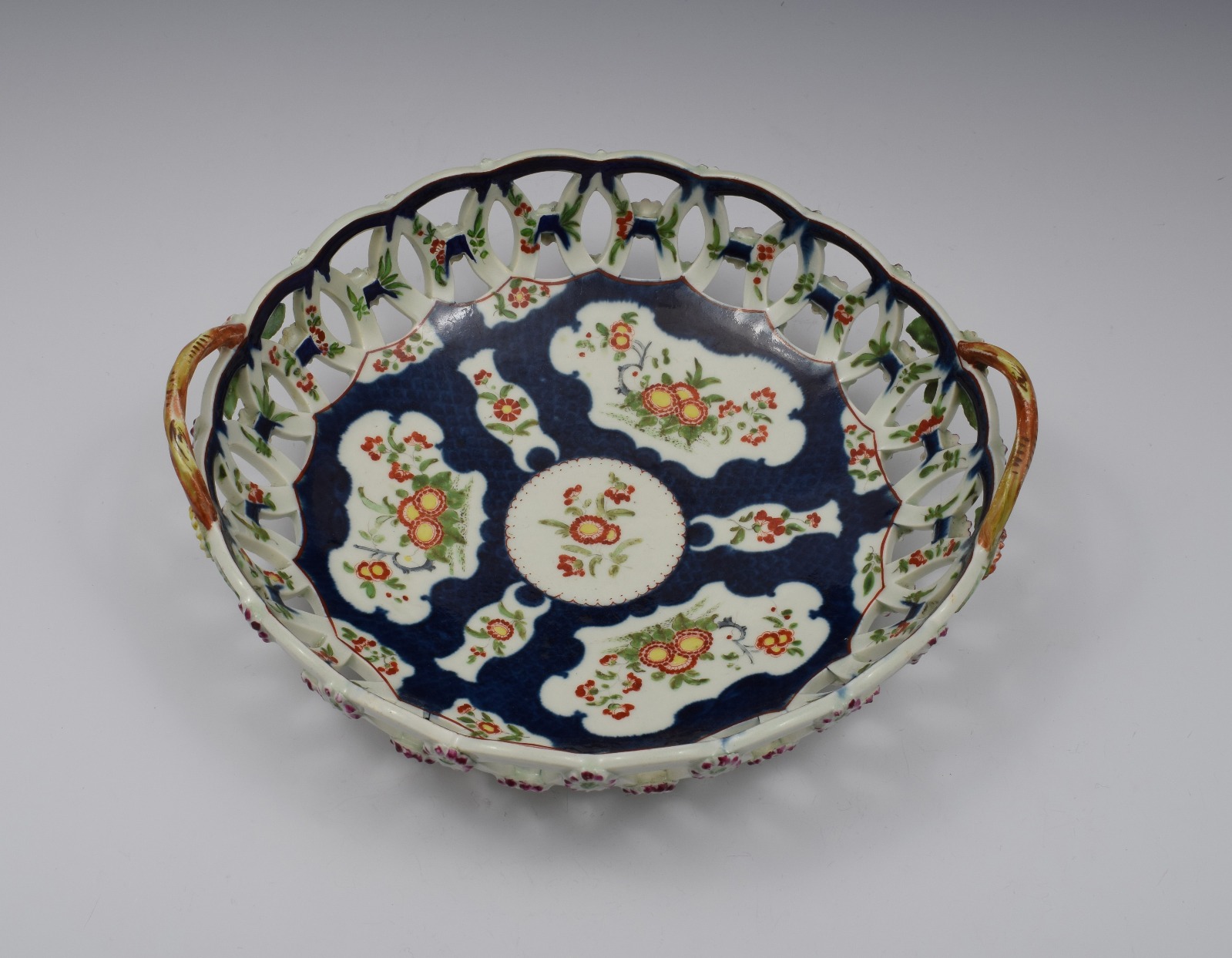 First Period Worcester Porcelain Large Scale Blue Basket C.1770 (1 of 1)