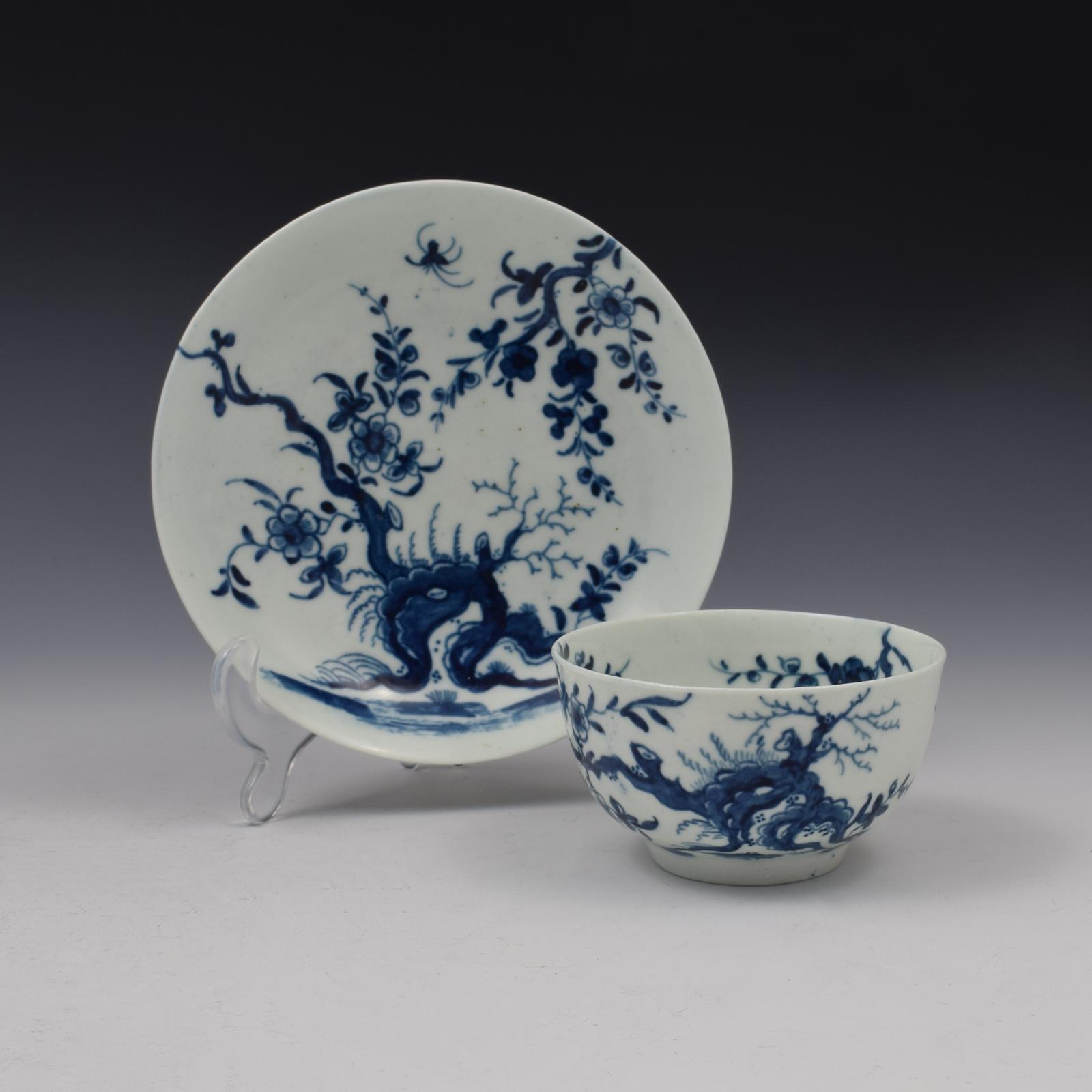 First Period Worcester Porcelain Prunus Root Tea Bowl & Saucer c.1760