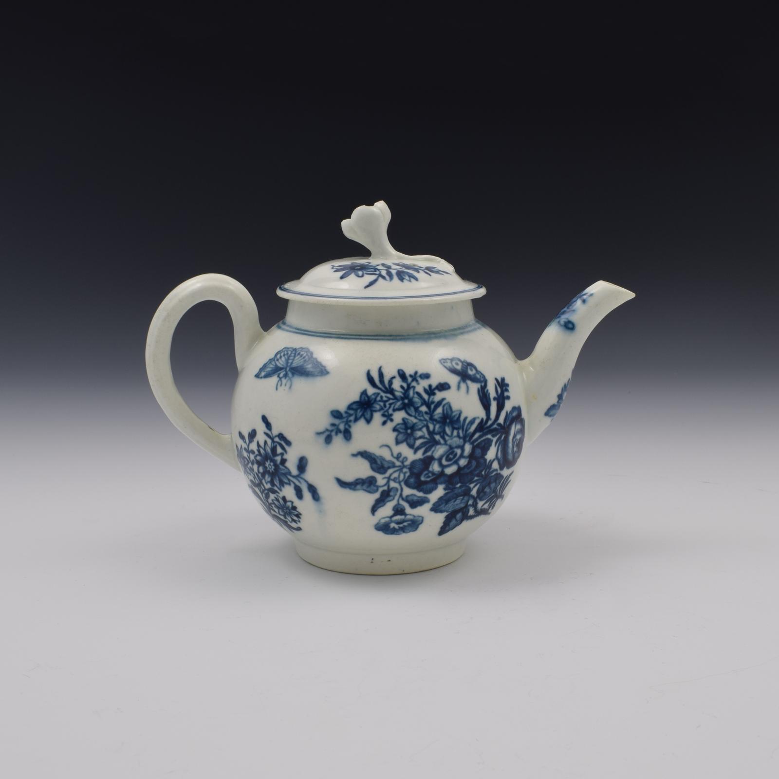 First Period Worcester Porcelain Small Three Flowers Teapot c.1765