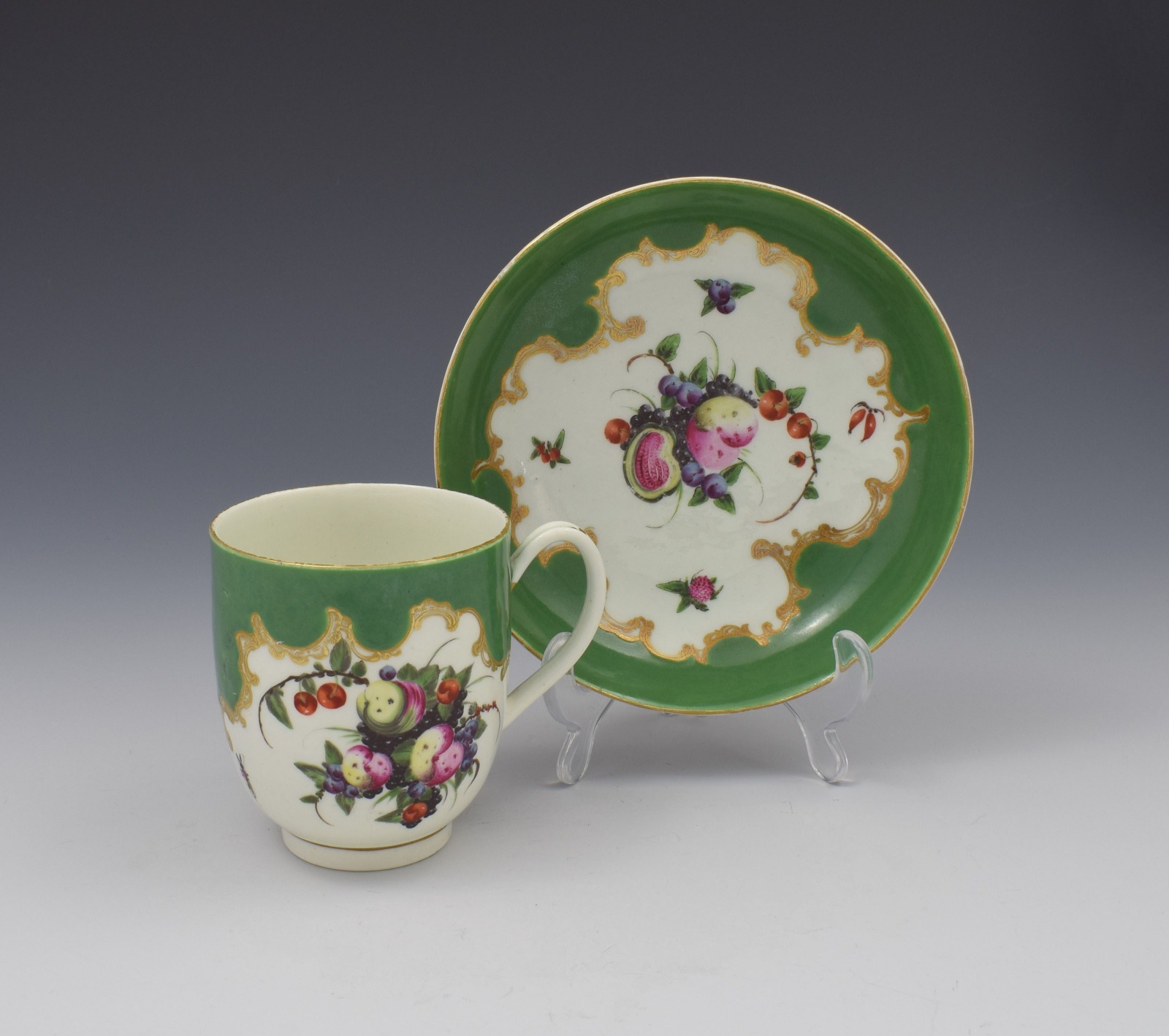 First Period Worcester Porcelain Spotted Fruit Pattern Coffee Cup & Saucer c.1770 (1 of 1)