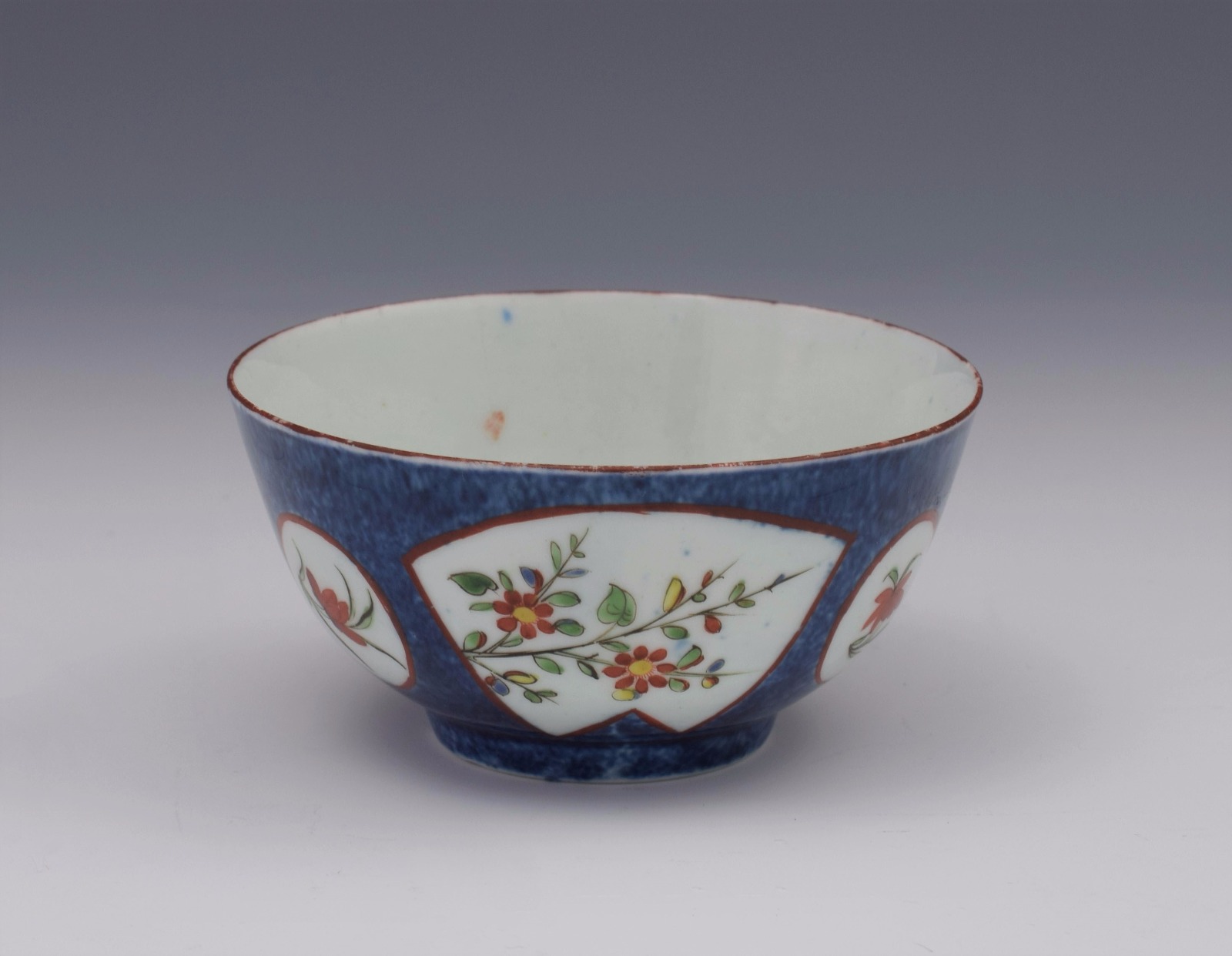 First Period Worcester Powder Blue Tea Bowl Exotic Flowers C.1765