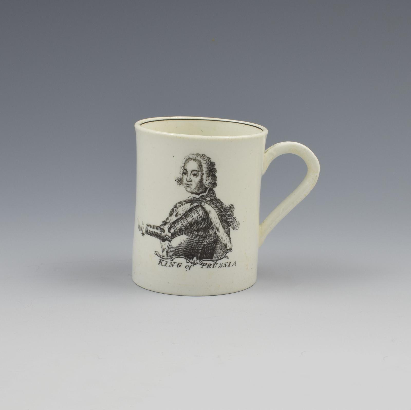 First Period Worcester Rare Printed King of Prussia Coffee Can / Small Mug