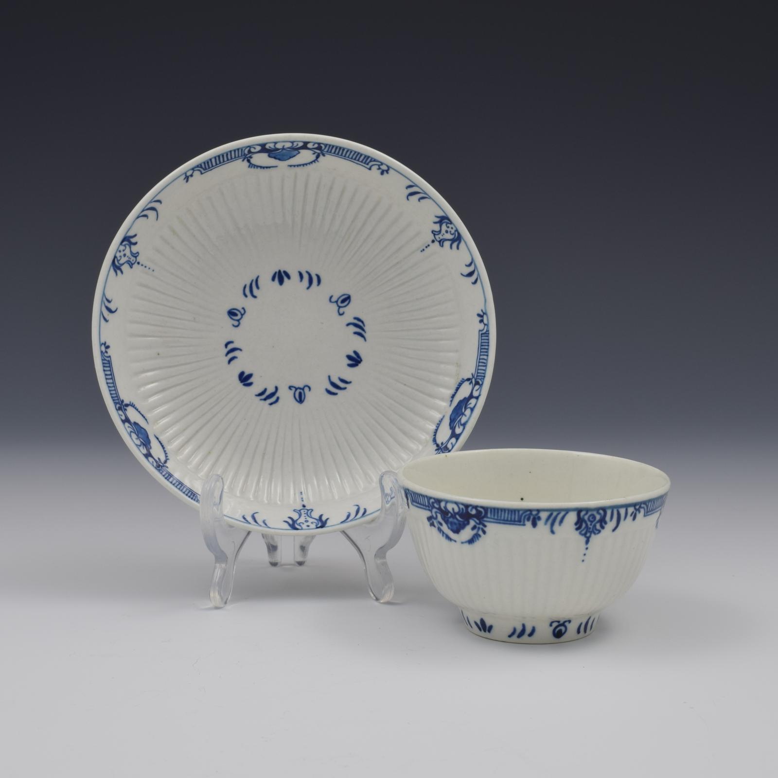 First Period Worcester Ribbed Tea Bowl & Saucer Lambrequin Border (1 of 7)
